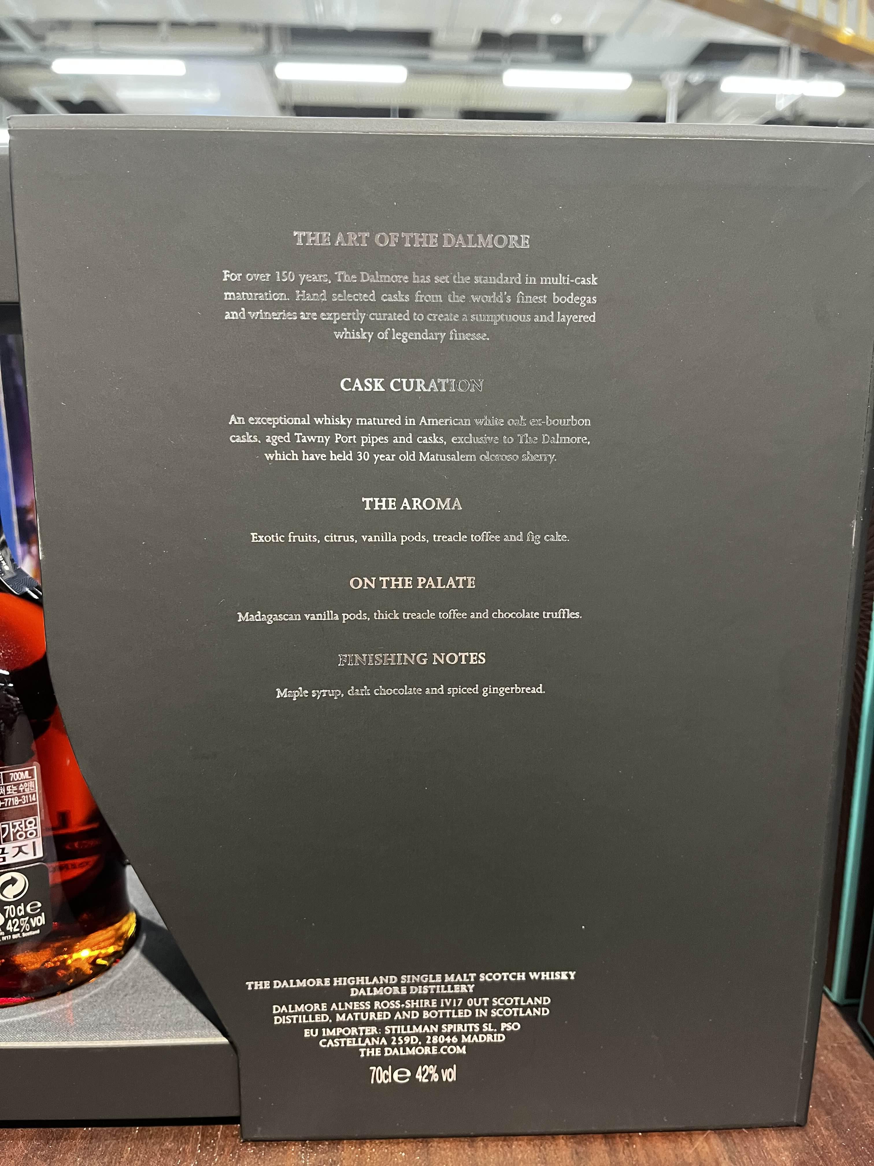 향은 이국적인 과일을 가지고 있으며 시트러스, 바닐라, 토피, 무화과 케익의 달콤한 맛을 느끼실 수 있습니다.