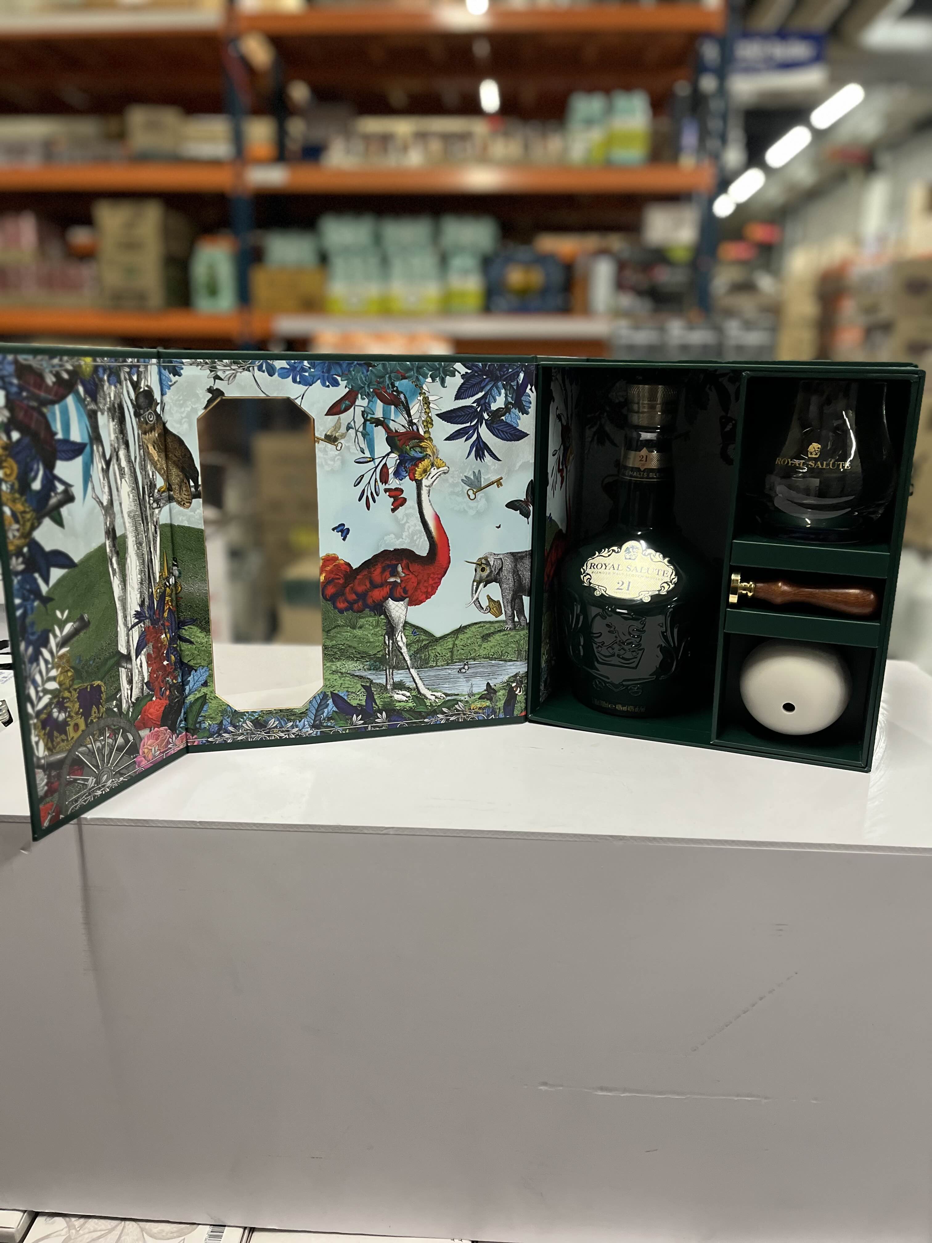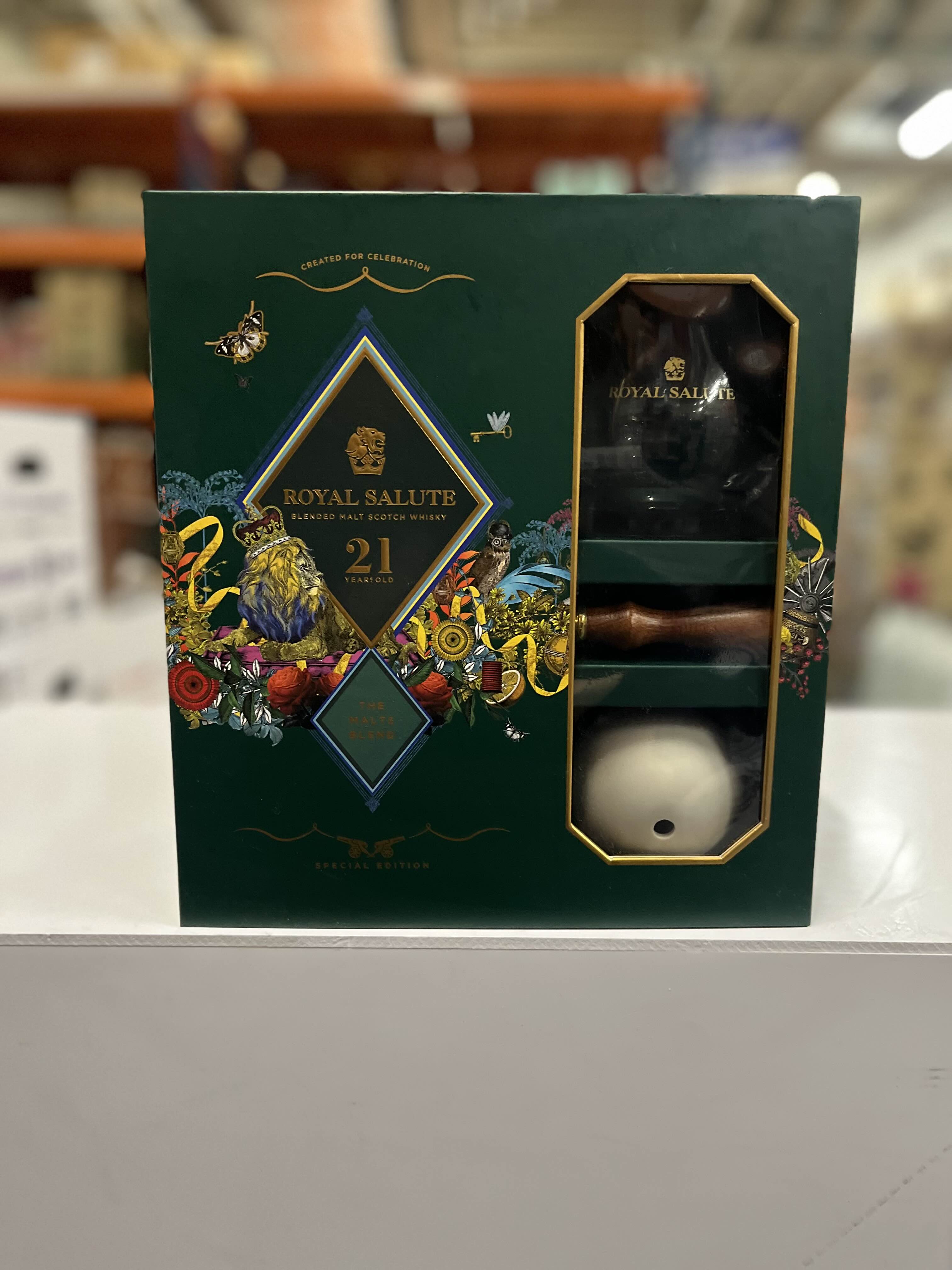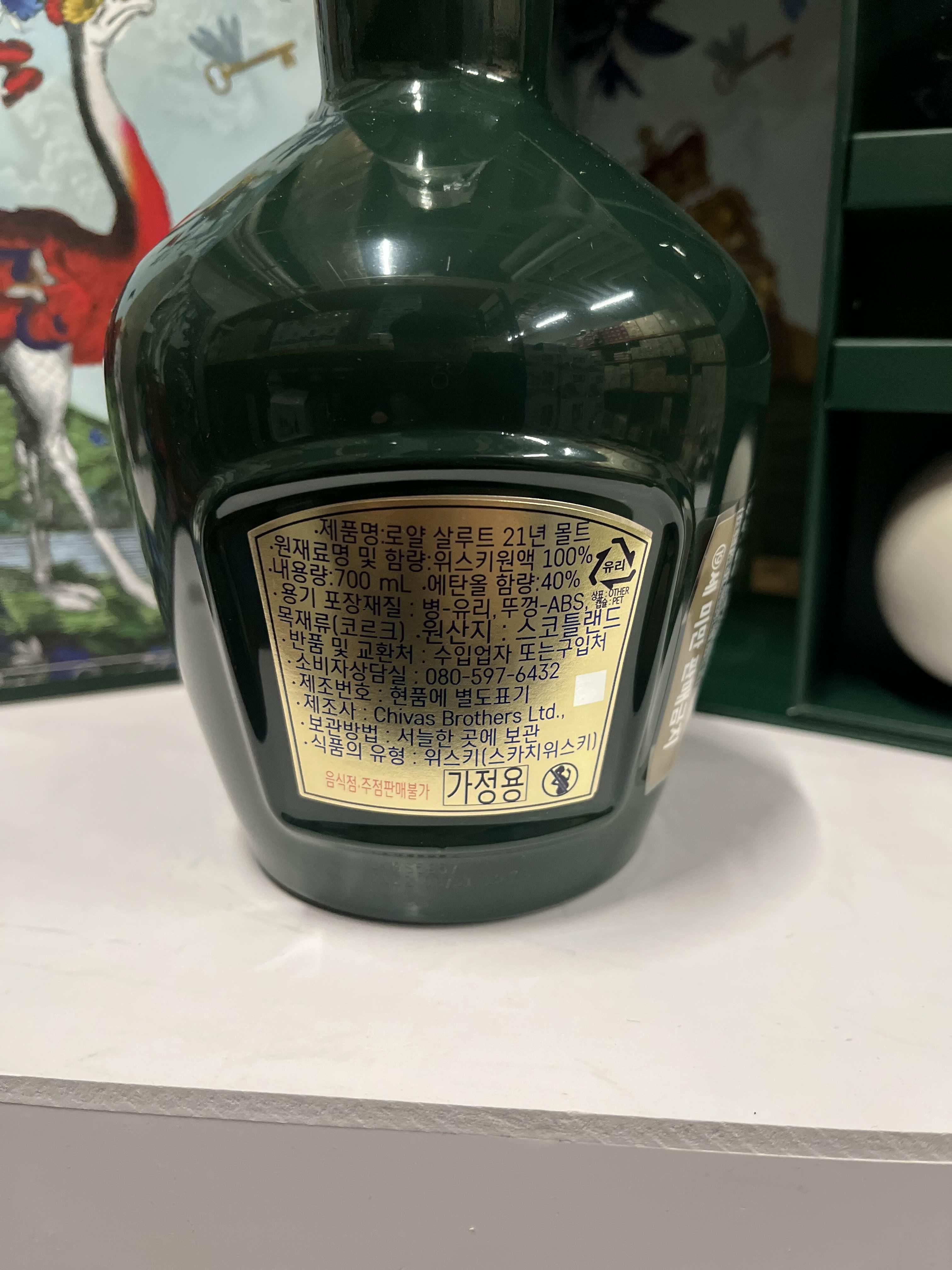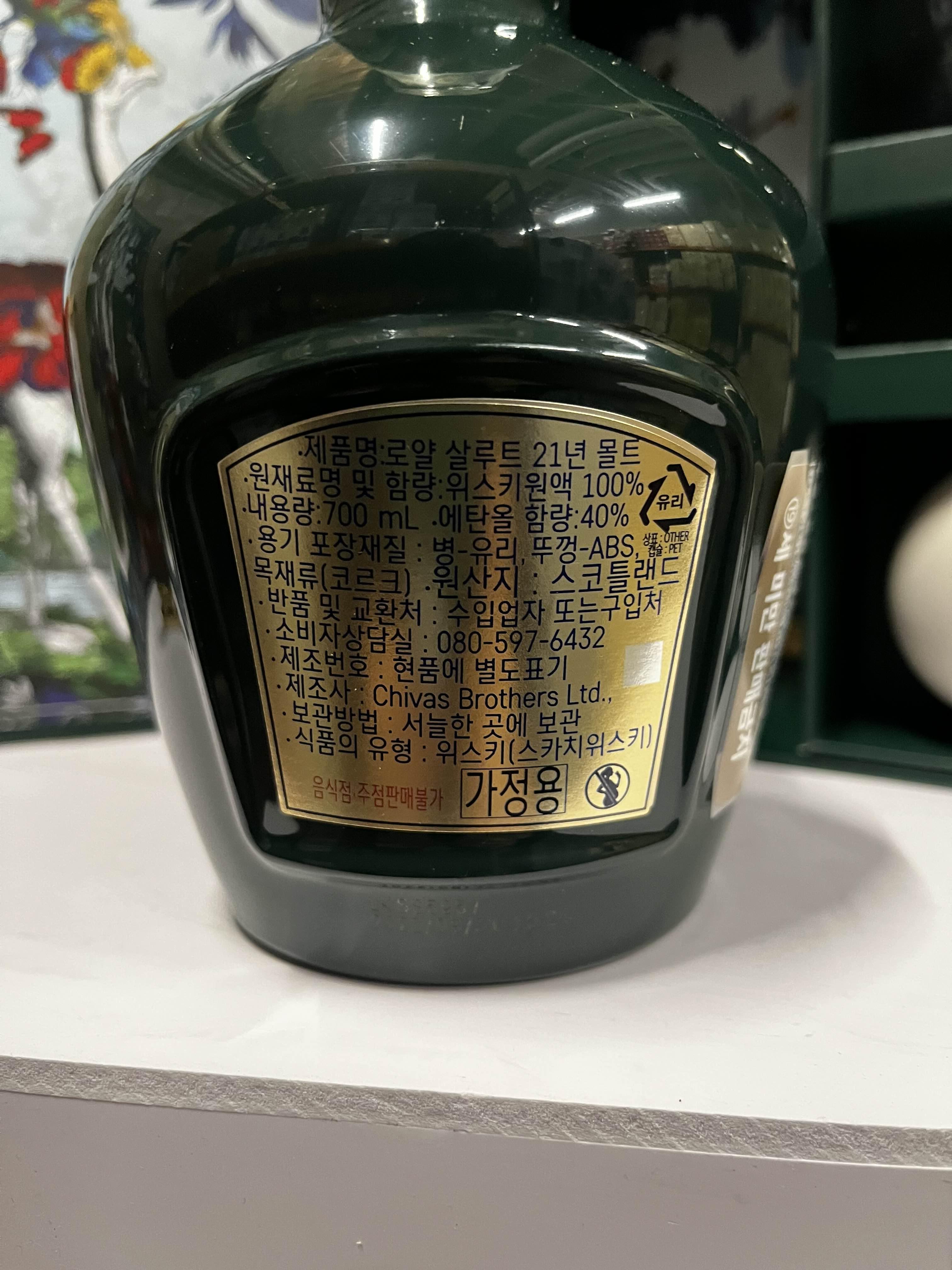 로얄 살루트 21년 몰트는 700ml 용량이며 위스키 100%의 제품입니다. 도수는 40도입니다. 가격은 대형마트(홈플러스) 기준 312,800원입니다.