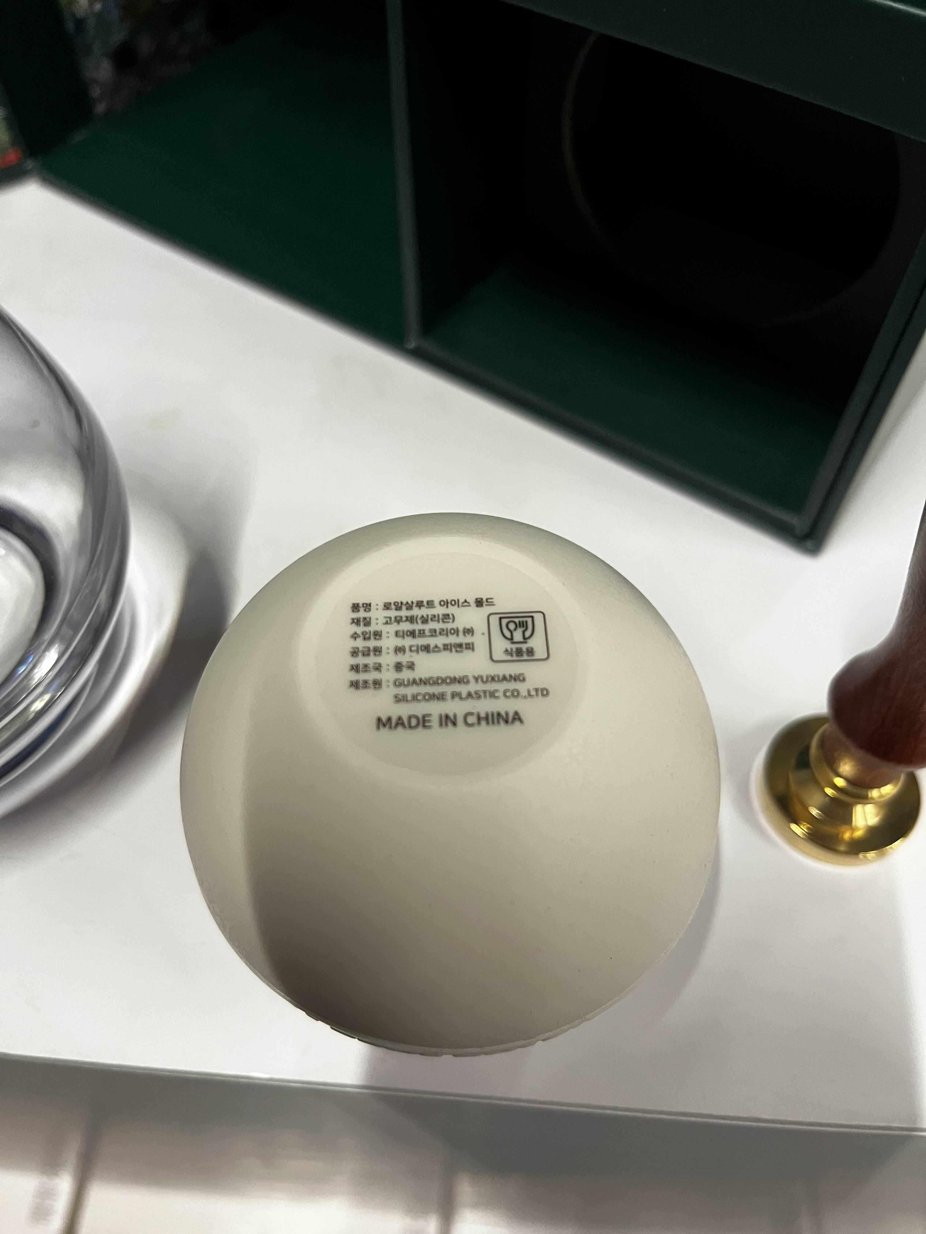 두 번째는 아이스 몰드입니다. 로얄 살루트는 온 더락으로 많이 즐기시기 때문에 얼음이 꼭 필요합니다. 전용잔 구성이 있는 만큼 그에 맞는 아이스 몰드가 있으면 정말 유용합니다. 잔에 맞는 얼음을 만들 수 있는 만큼 활용성이 좋습니다. 하얀색이 더욱 매력적으로 느껴집니다.