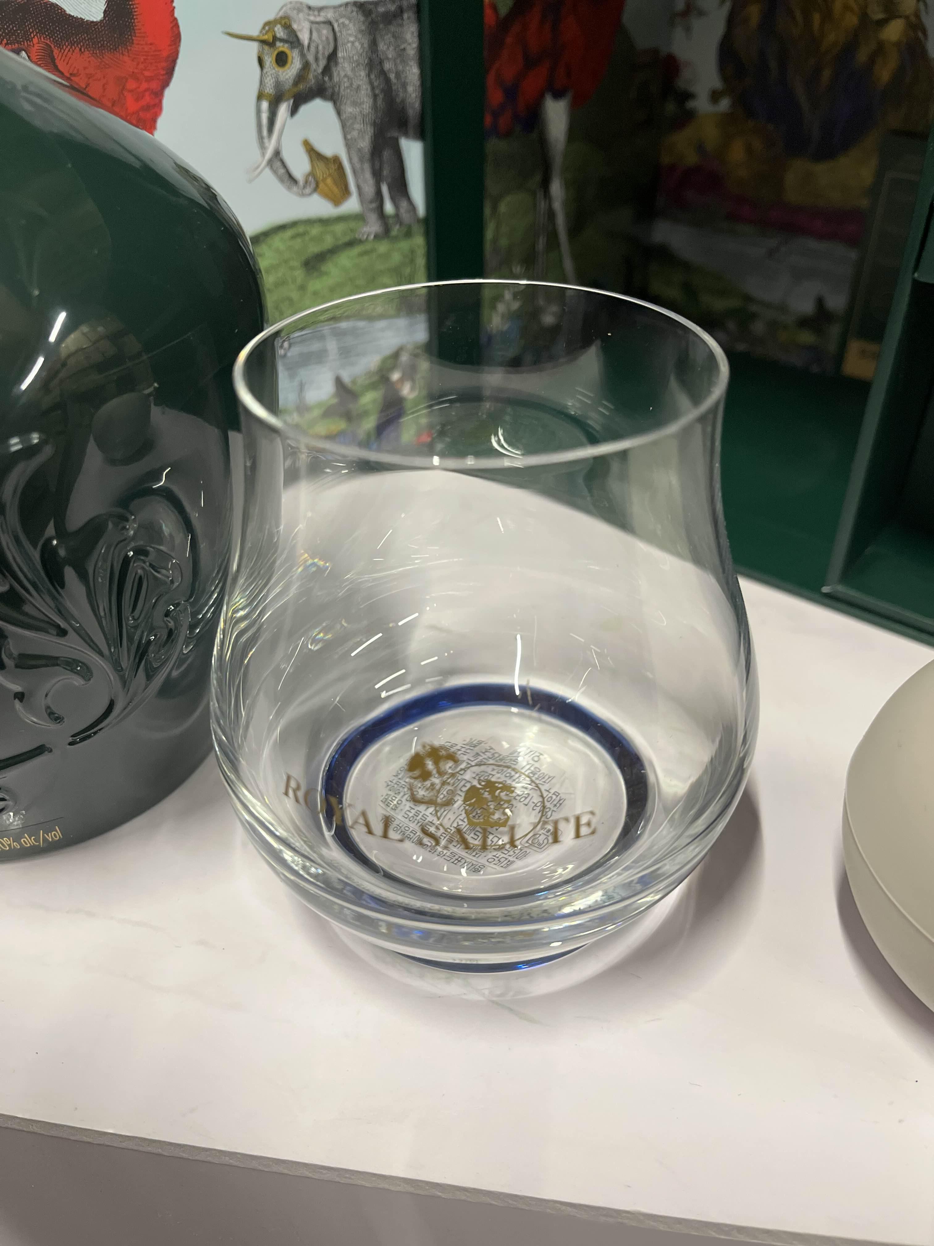 첫 번째는 전용잔입니다. 로얄 살루트의 맛을 깊게 느끼게 해 줄 수 있는 심플한 잔입니다. 전용잔의 구성이 잘 나오지 않는다는 점에서 매력적인 잔입니다.
