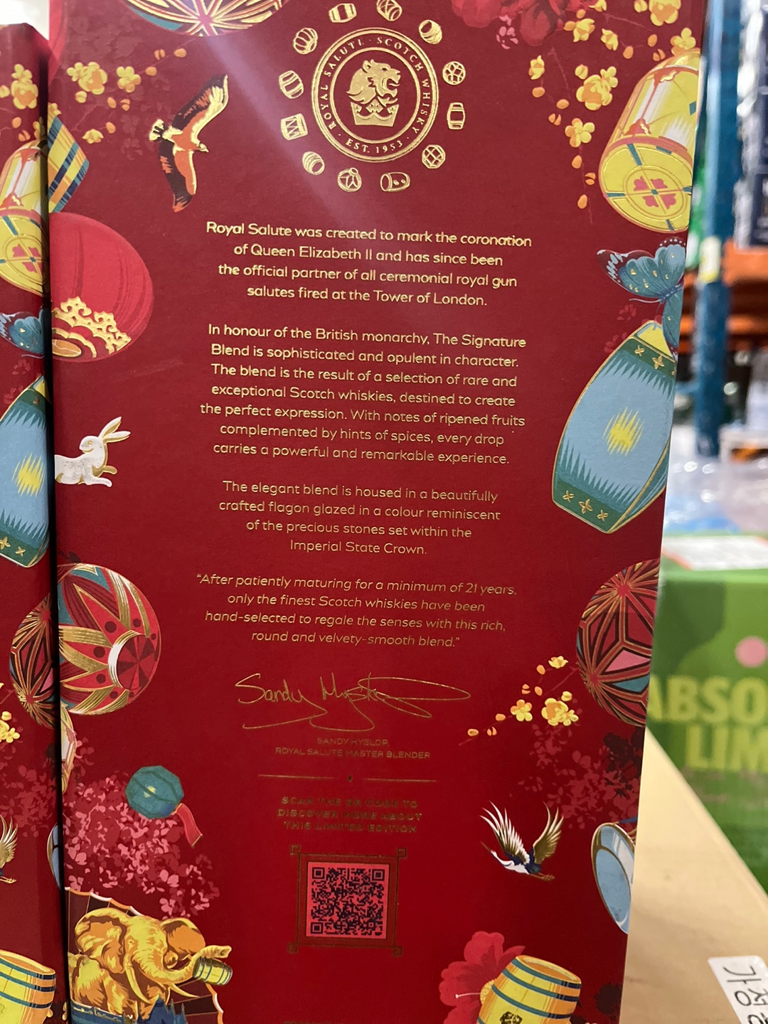 로얄 살루트는 위스키를 좋아하시는 분이라면 모두 다 아시는 유명한 제품입니다. 요즘처럼 위스키 열풍이 불기 전부터 말 그대로 아시는 분들은 즐겨드셨던 제품입니다. 선물용으로도 좋아 명절에 판매가 많이 되기도 하고 소중한 분들께 마음을 전할 때에도 많은 분들이 구매하십니다.