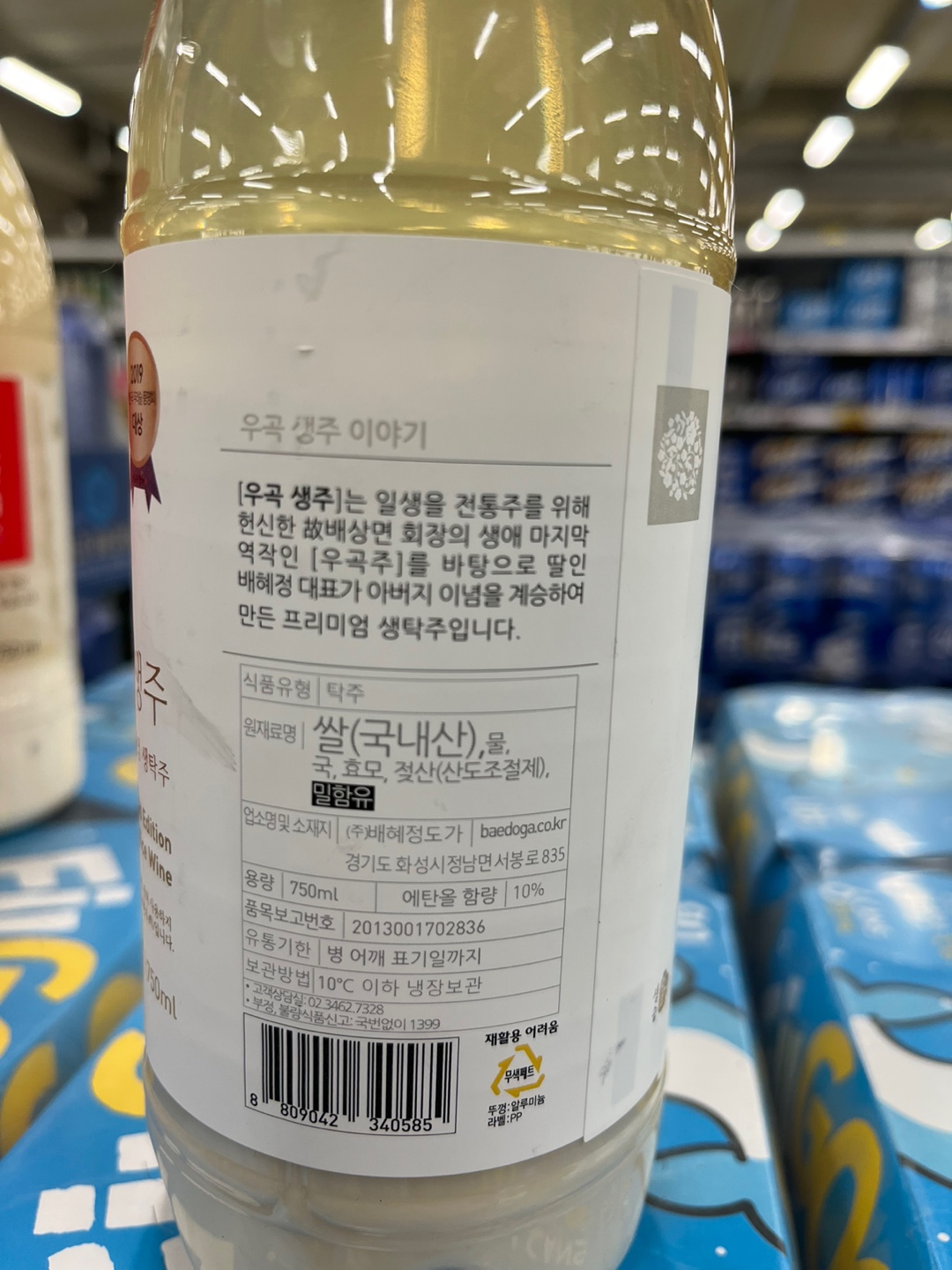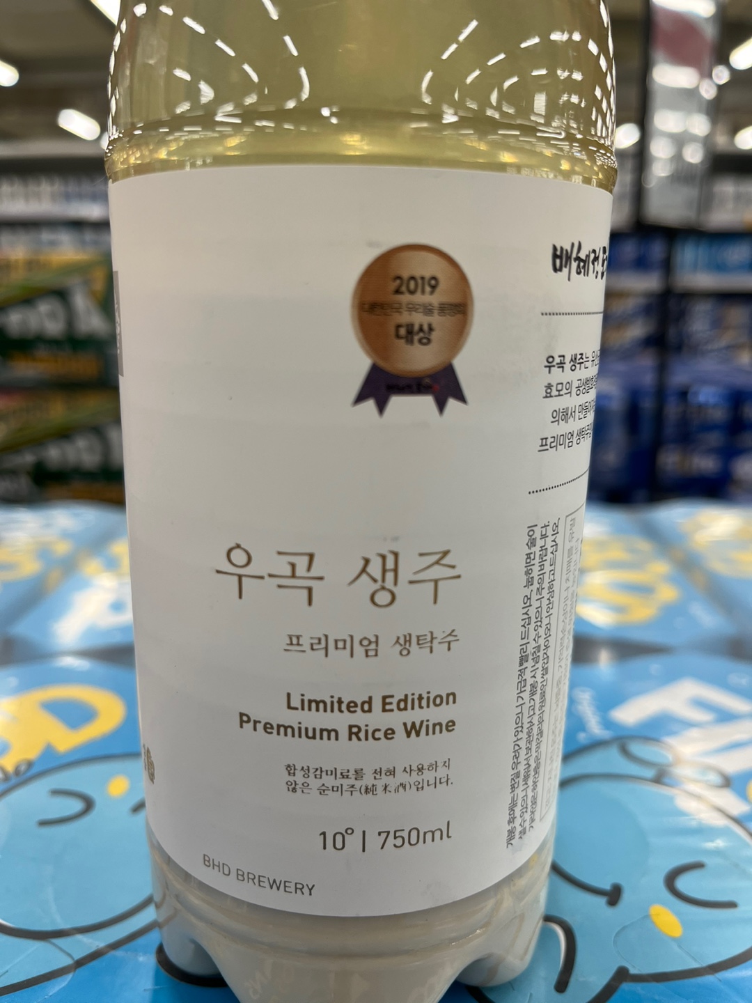 우곡생주는 우곡주를 바탕으로 개발된 생탁주입니다. 프리미엄 생탁주를 표방하는 만큼 만드는 방식과 역사 그리고 수상내역을 표시해 놓았습니다. 감미료는 첨가되지 않았습니다. 그리고 공생발효과정이라는 공법을 사용한 것이 특징입니다.