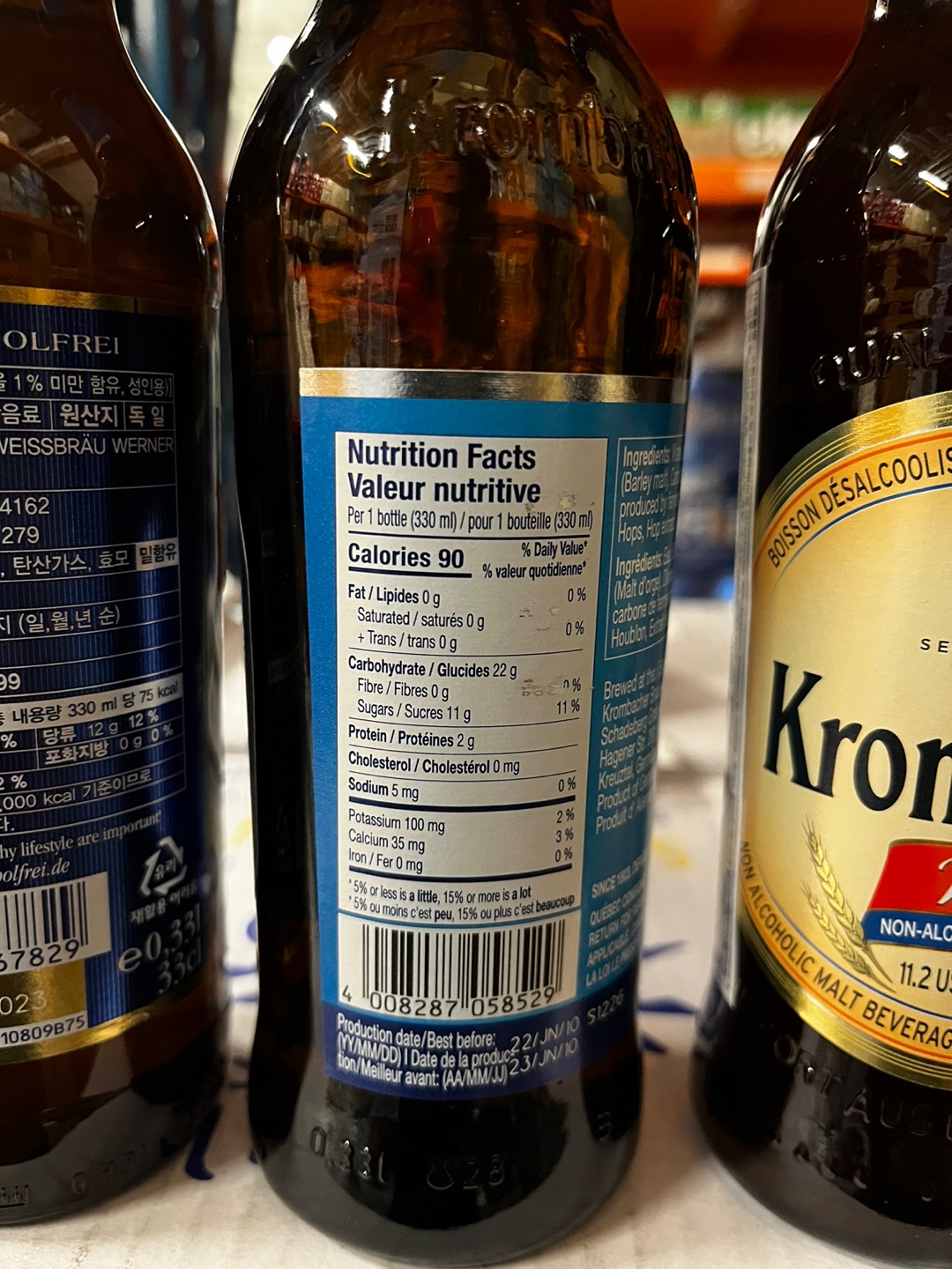 캔맥주로 무알콜을 많이 즐기셨어도 병맥주는 마주치기가 좀 어려운 환경입니다. 대형마트에 가시면 쉽게 구하실 수 있으니 마트를 방문하시면 찾아보시길 바랍니다. 무알콜과 논알코올에 대해서 너무 걱정하지 마시고 뒤에 있는 성분 표시를 참고하셔서 당류의 함량, 탄수화물의 함량 등을 잘 고려하셔서 선택하시는 것을 추천드립니다.