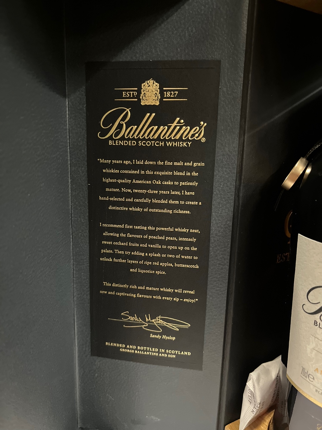 발렌타인 23년산 위스키는 발렌타인 위스키의 상급라인입니다. 최고급 위스키답게 전용케이스에 담겨 판매되고 있습니다.