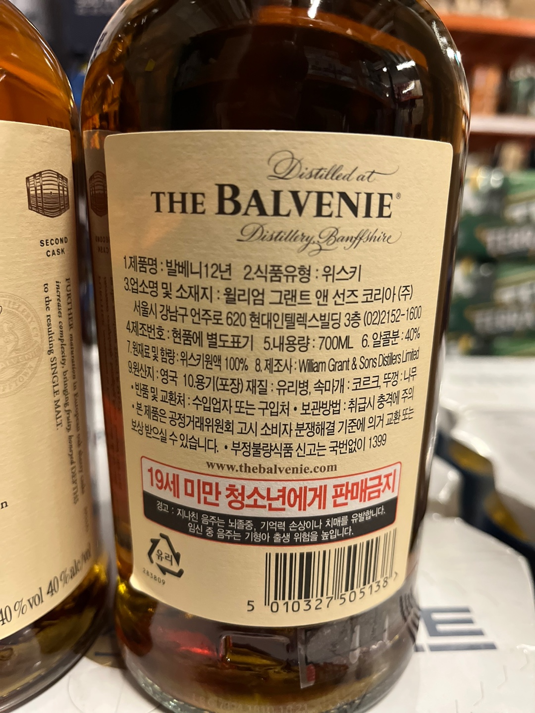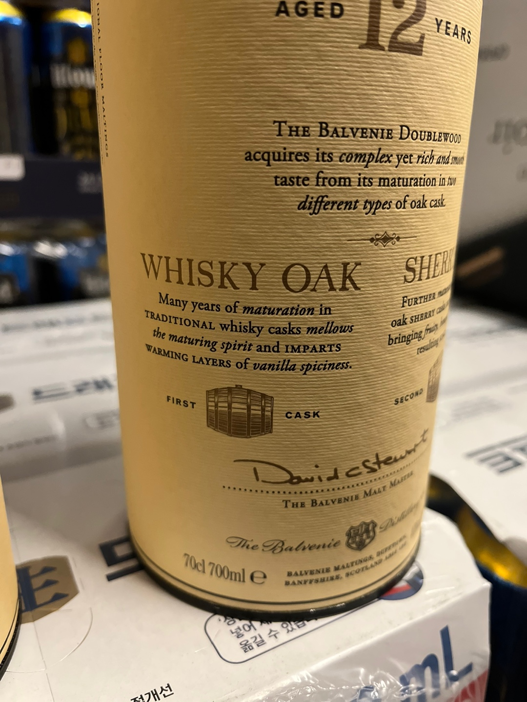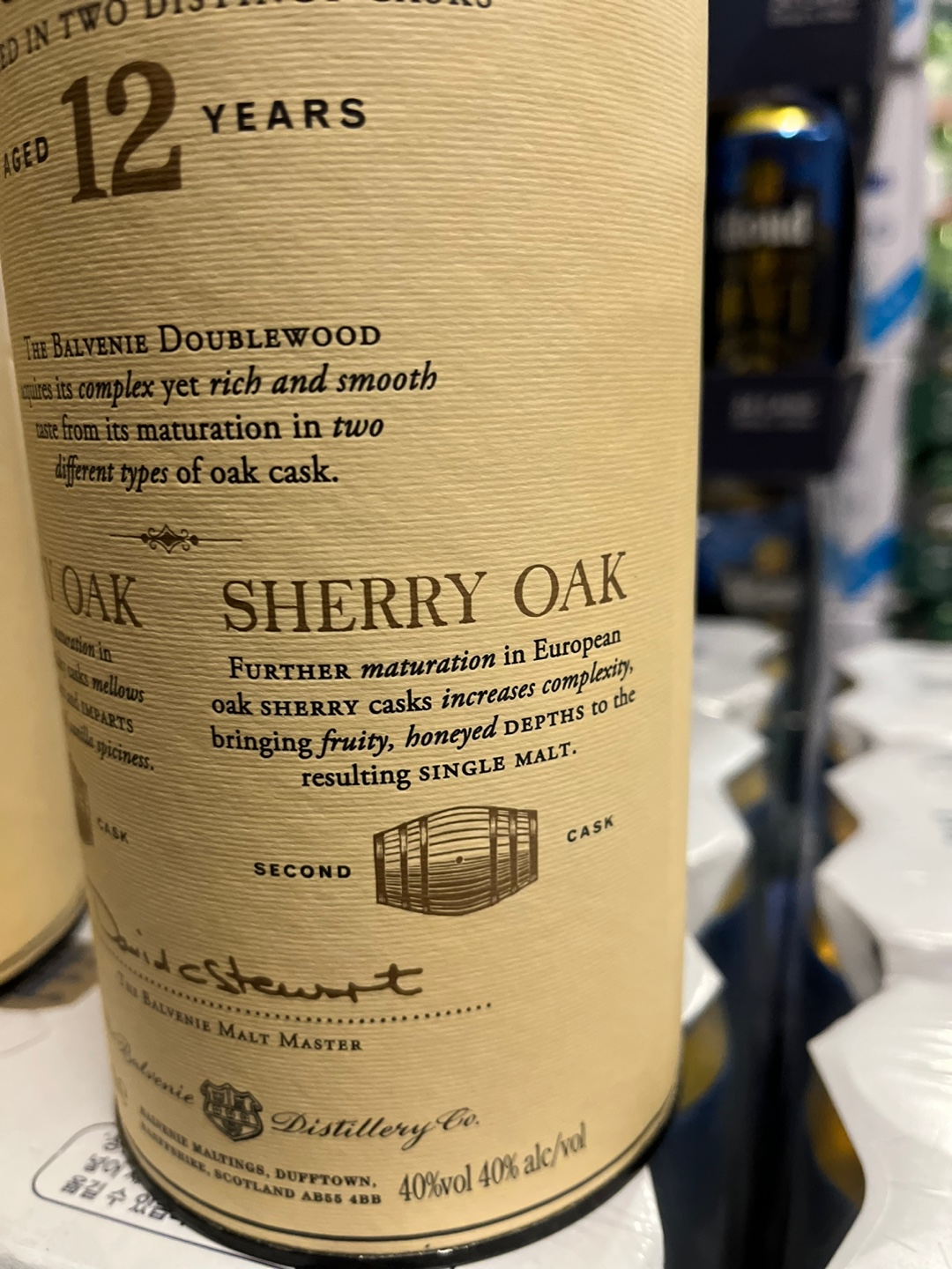 발베니 12년 더블우드 위스키는 700ml 용량으로 40도의 도수를 가지고 있습니다.