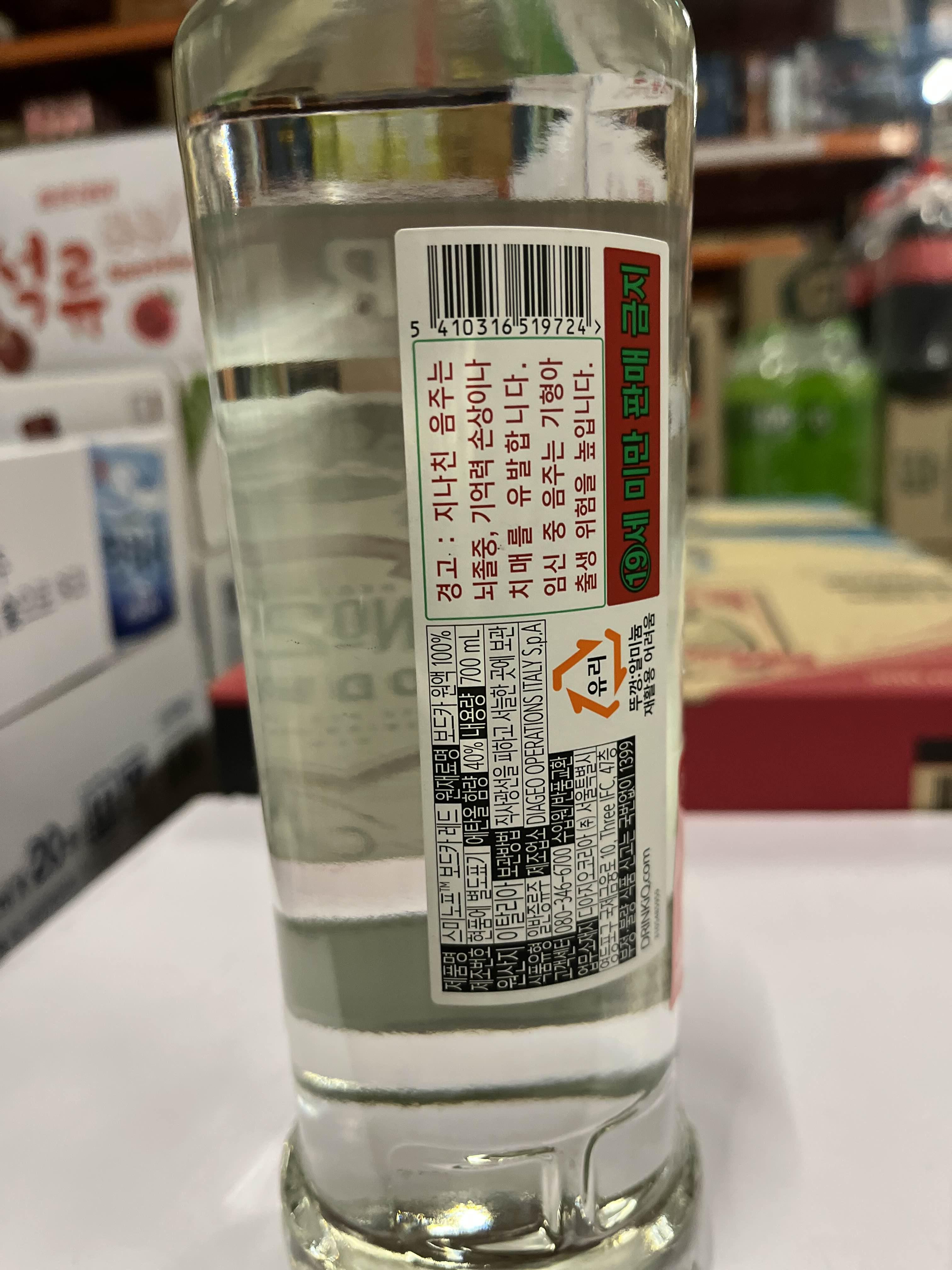 보드카를 즐기시는 분들이 가장 선호하는 브랜드인 스미노프입니다. 일반적으로 스미노프 레드와 그린애플 두 가지 종류를 판매하고 있습니다.