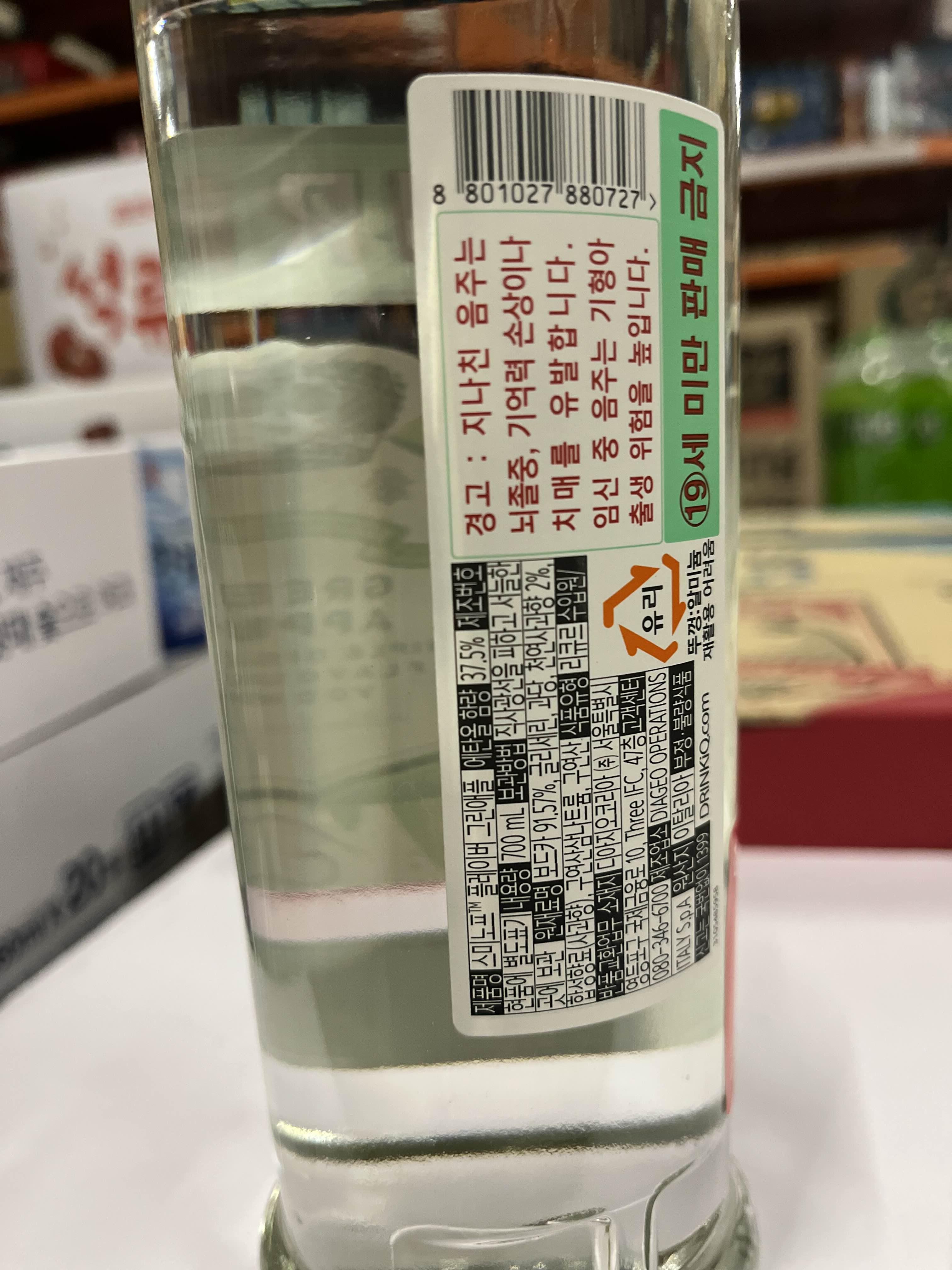 보드카를 즐기시는 분들이 가장 선호하는 브랜드인 스미노프입니다. 일반적으로 스미노프 레드와 그린애플 두 가지 종류를 판매하고 있습니다.