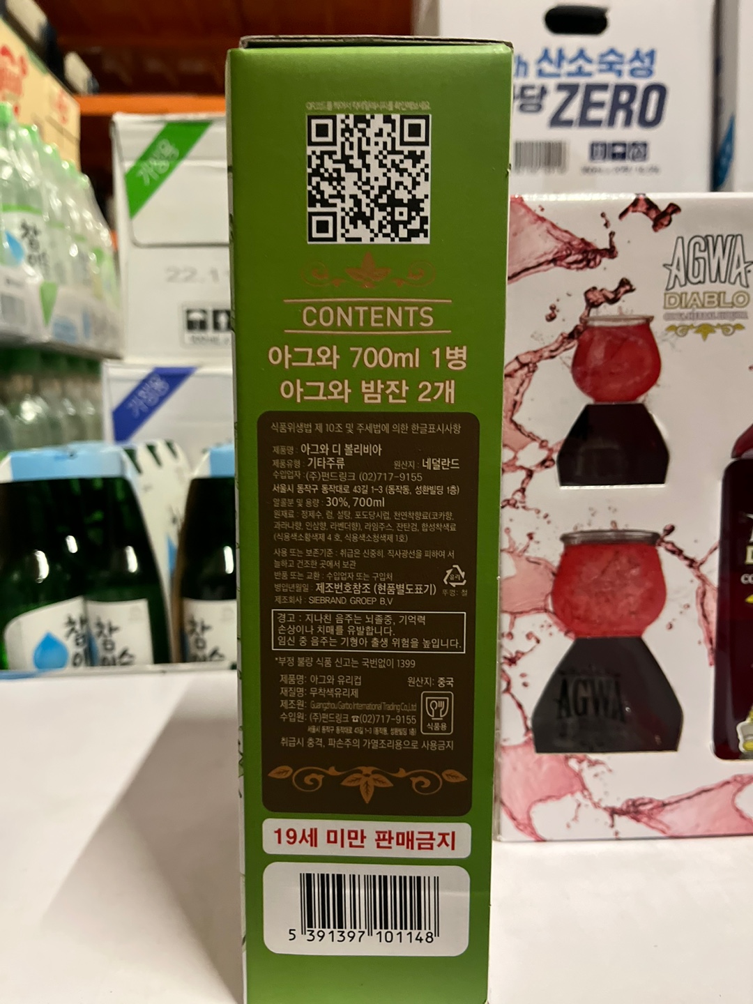 아그와 디아블로는 500ml 용량에 20도의 도수를 가지고 있으며 가격은 37,900원 입니다.