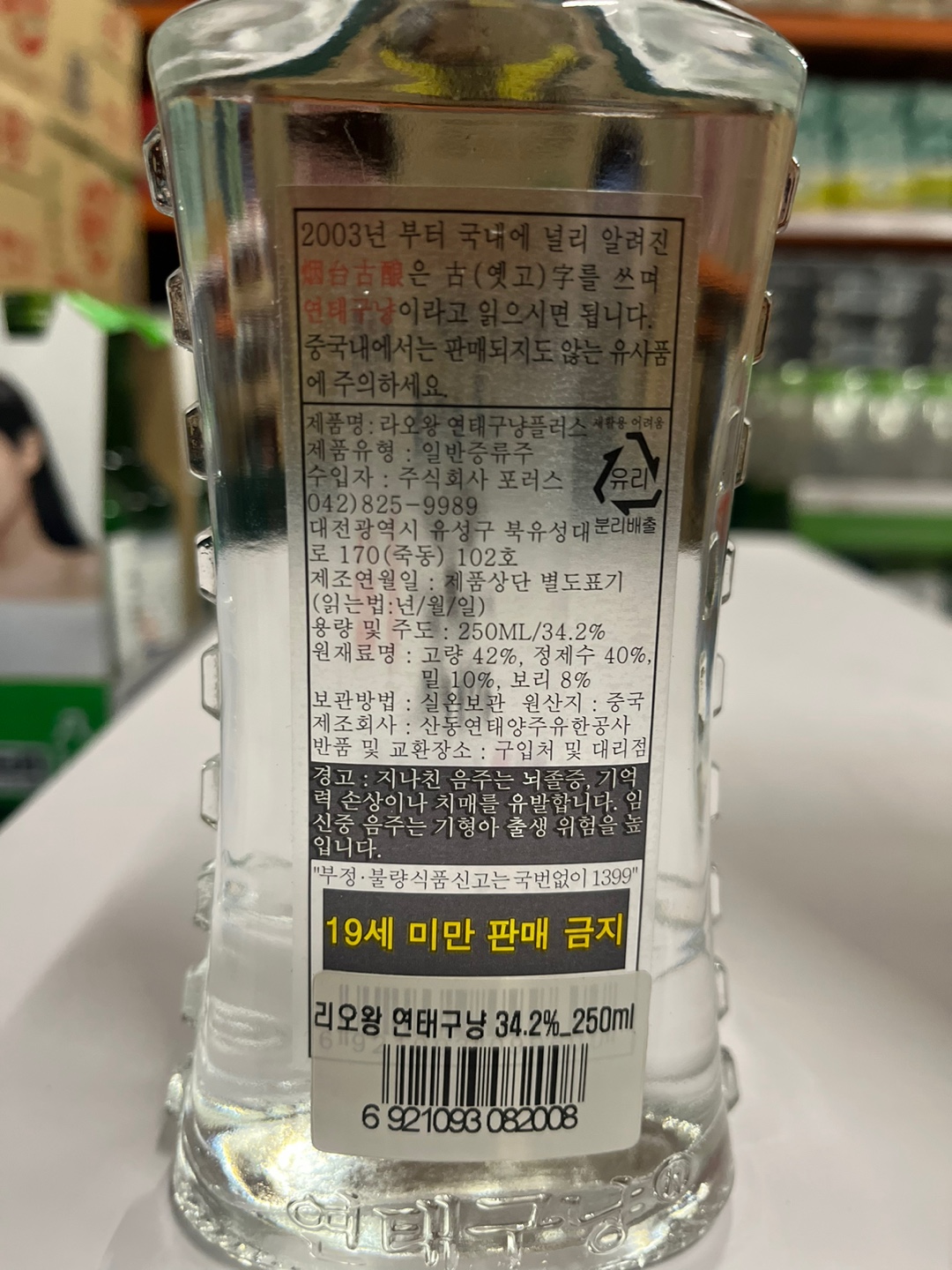 고량주를 찾으시는 분들이 많지만 일반적인 소매점에서는 연태고량주를 찾으시기가 쉽지 않습니다. 연태고량주라 불리는 제품들이 많습니다. 현재 대형마트(홈플러스)에는 소개드리는 연태구냥이 몇 년 전부터 꾸준히 들어와 판매하고 있습니다.