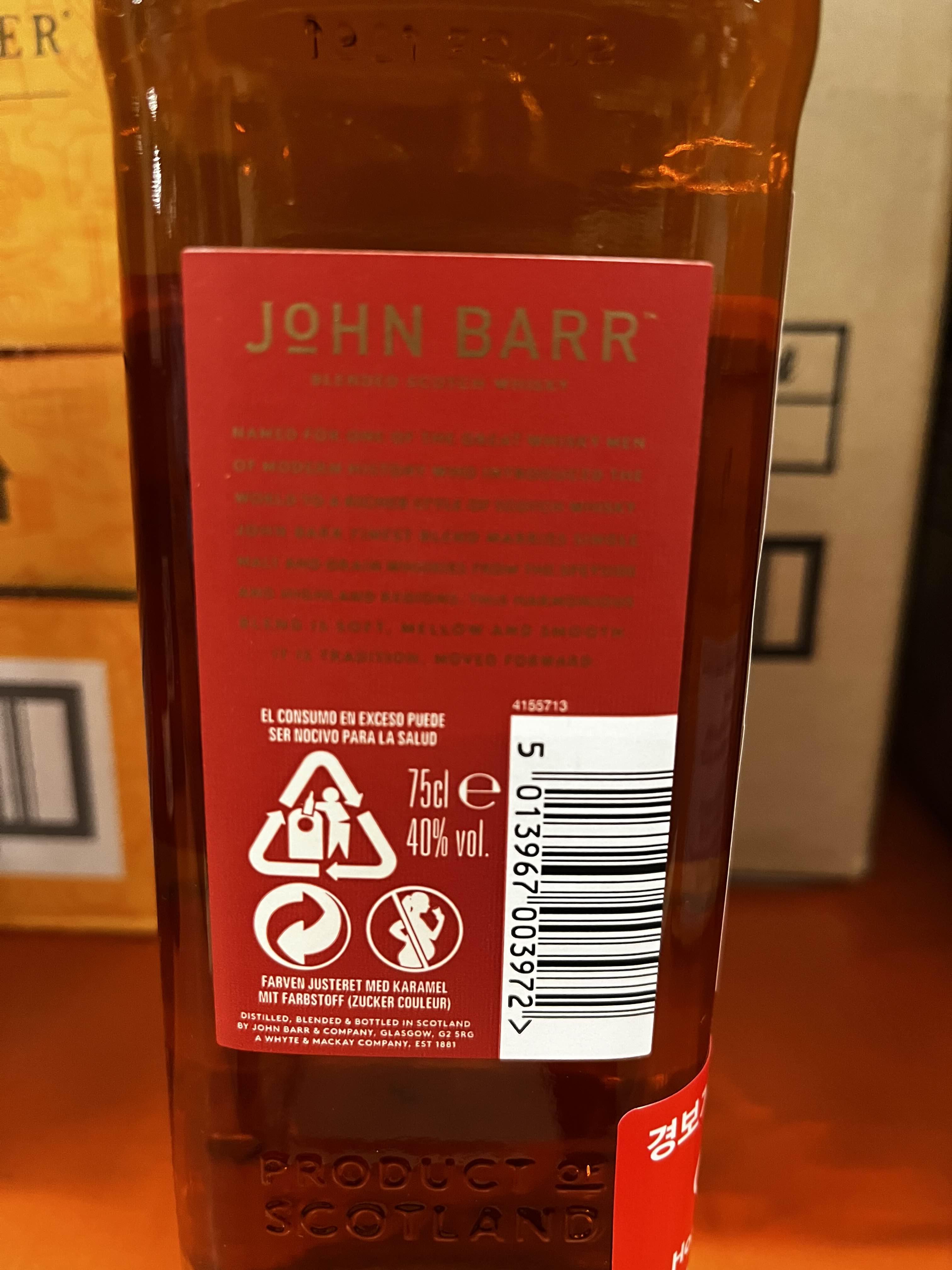존바 파이니스트는 750ml의 용량과 40도의 도수를 가진 블렌디드 스카치 위스키로 가격은 대형마트 기준 13,900원 입니다. 하이볼 해먹기 좋은 위스키입니다.