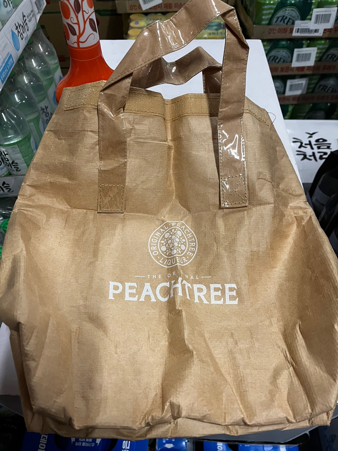 이번에 같이 포함된 구성품은 재사용이 가능한 타이벡 보냉백입니다. 환경을 생각한 보냉백이면서 장바구니입니다. 피치트리의 문양이 깔끔하게 그려진 가방입니다. 가볍고 튼튼했으며 자연스럽게 패션 아이템으로도 사용하기 충분한 가방이었습니다.
