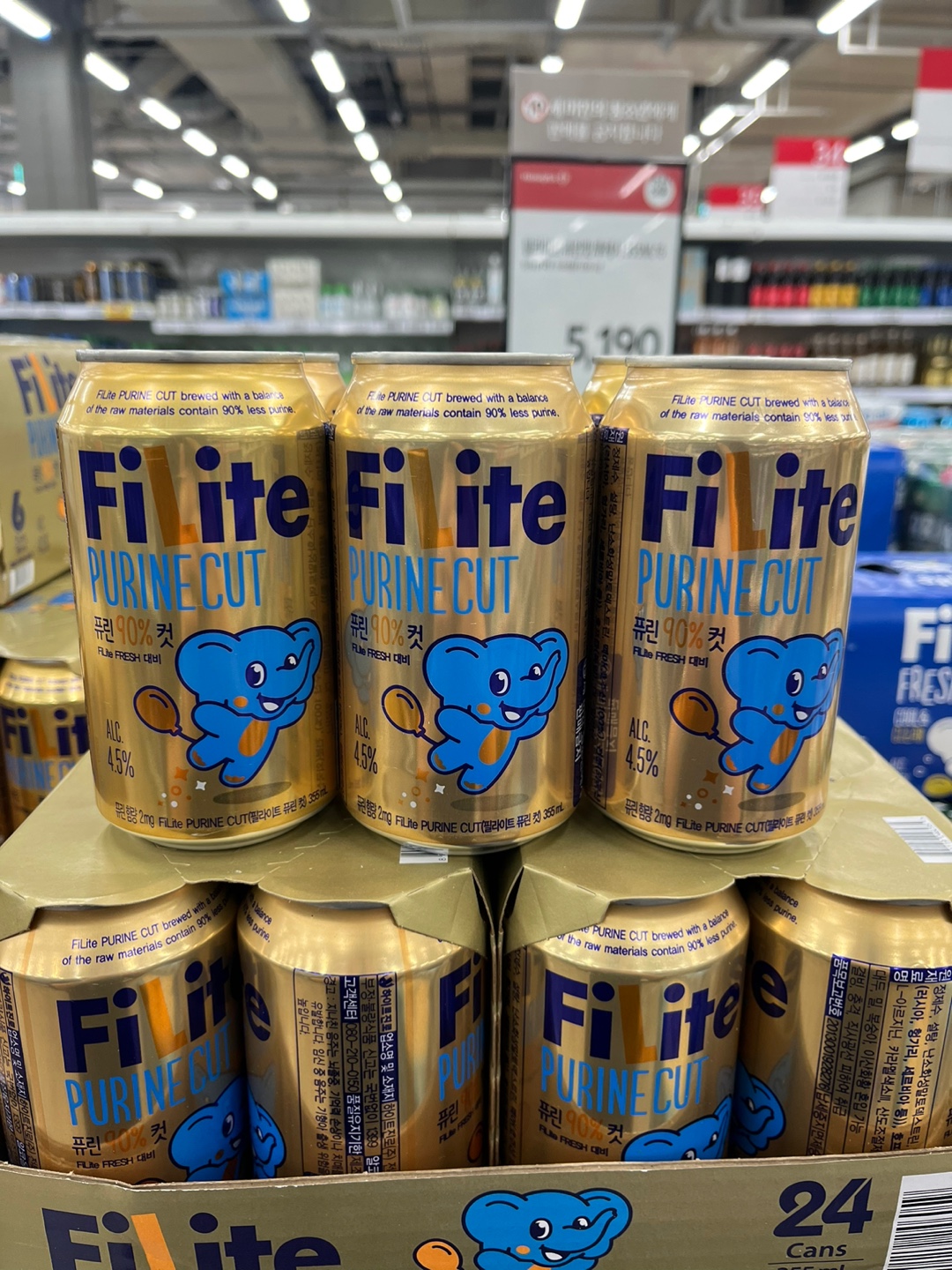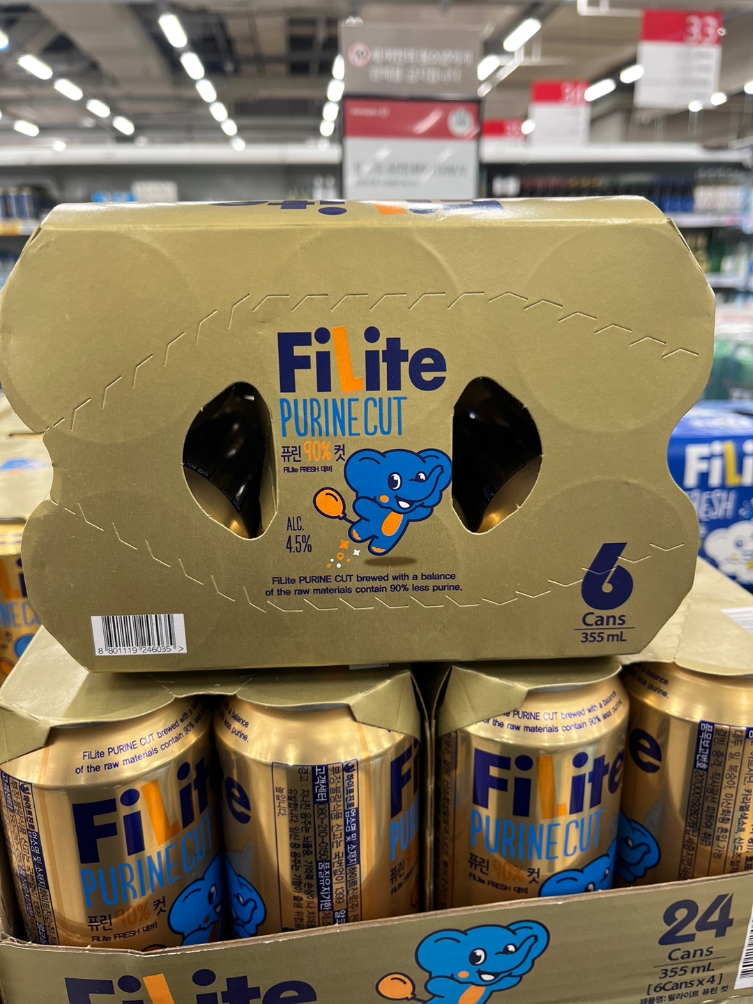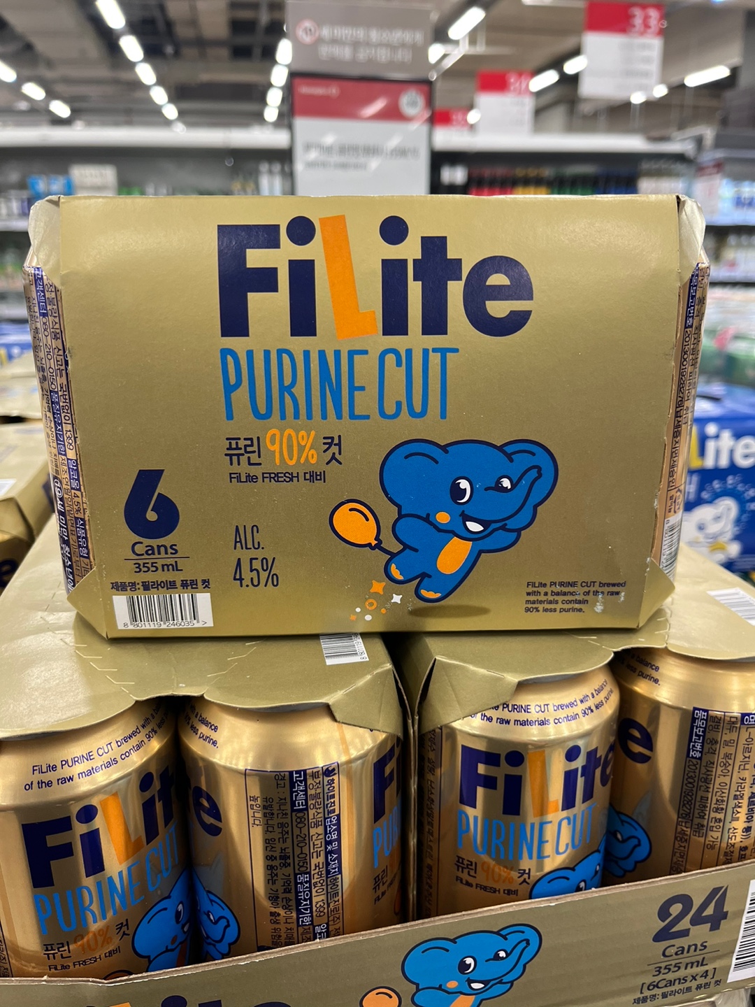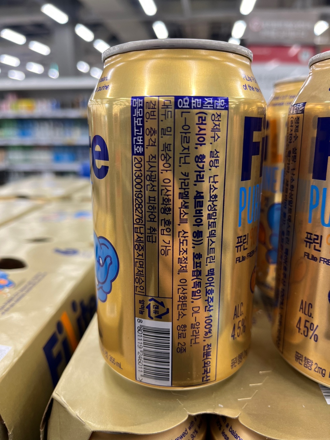 필라이트 퓨린 컷은 355ml 용량으로 출시되었으며 도수는 4.5도입니다.