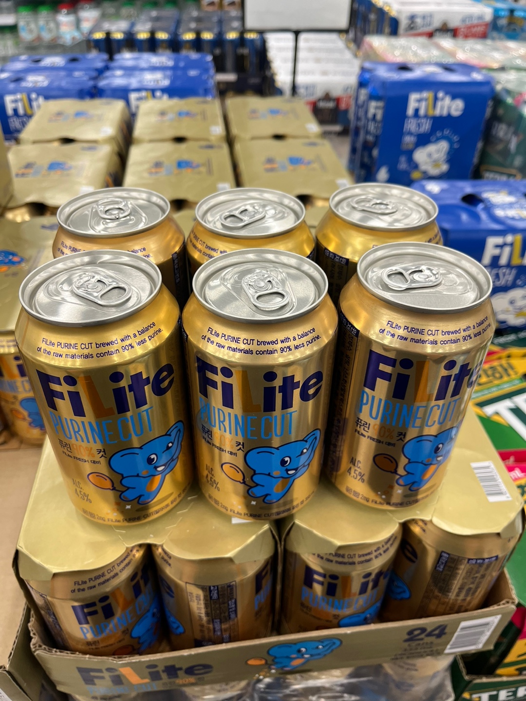 필라이트 퓨린 컷은 필라이트 후레시의 퓨린 함량의 90%를 감소시킨 제품으로 통풍에 대한 우려가 있거나 맥주를 좀 더 건강하게 마시고 싶은 분들에게