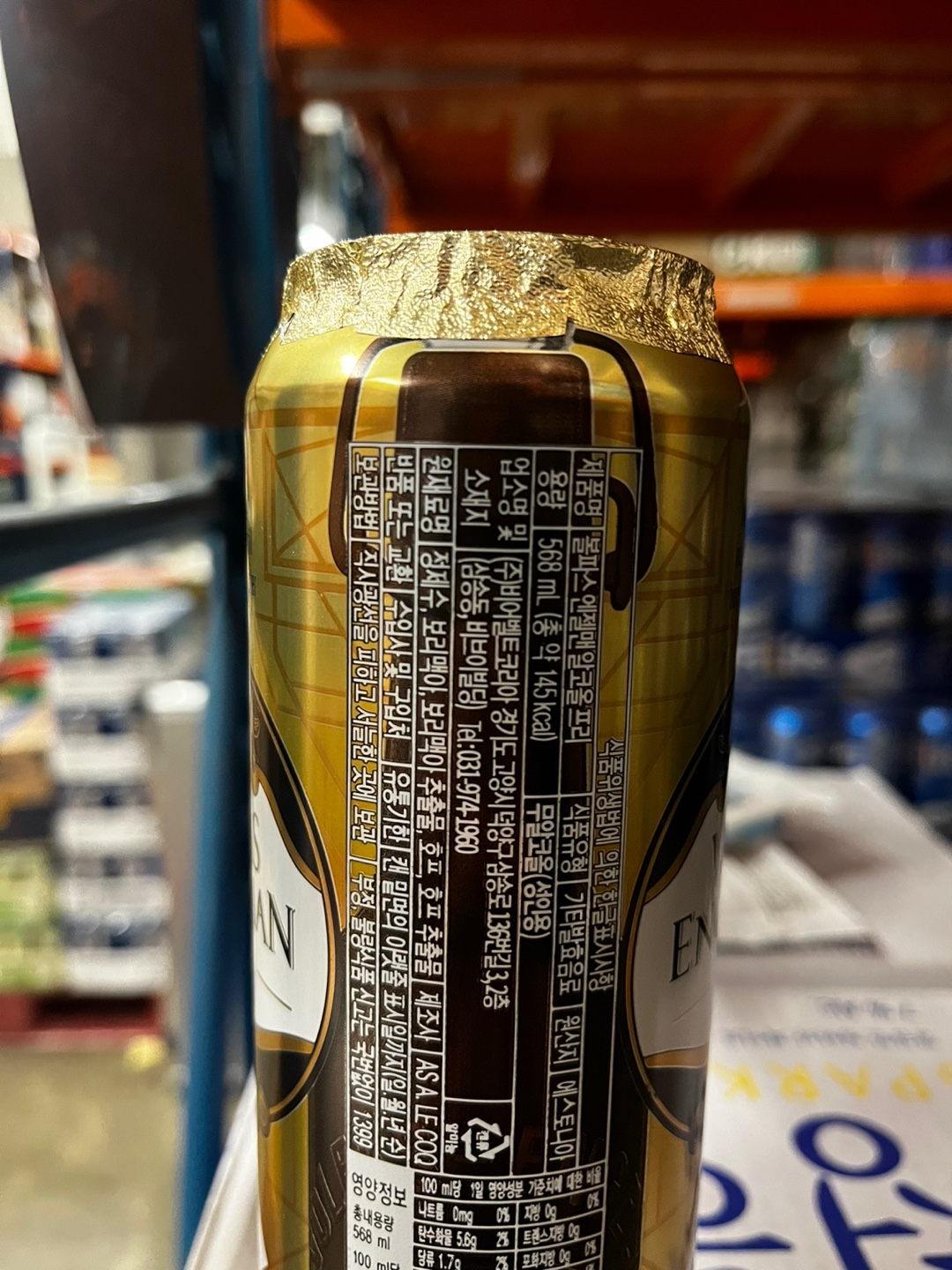 568ml 용량에 가격은 2,700원입니다. 한 캔 당 칼로리는 145kcal입니다.