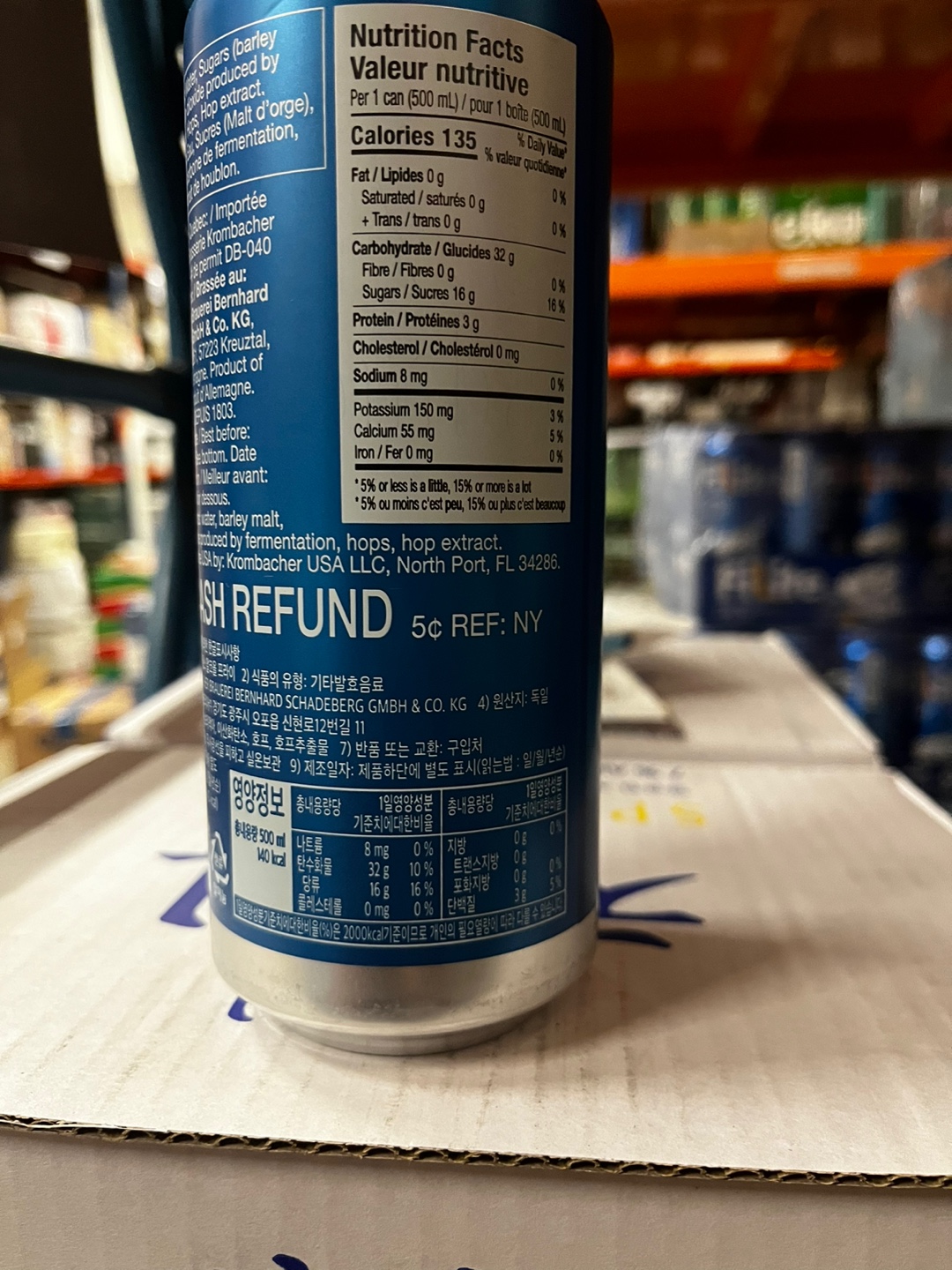 용량은 500ml이며 가격은 2,790원입니다. 한 캔 당 140kcal입니다.