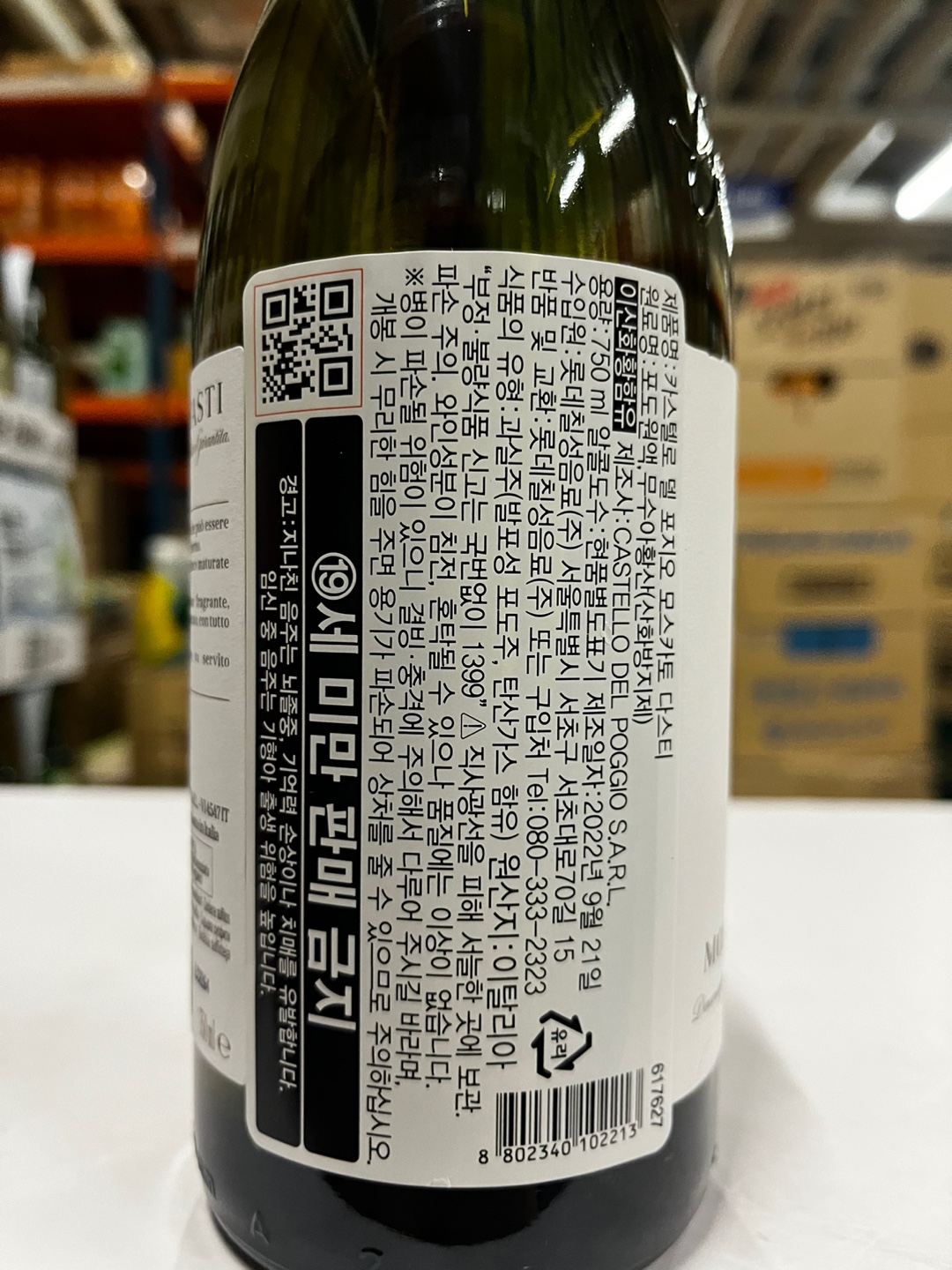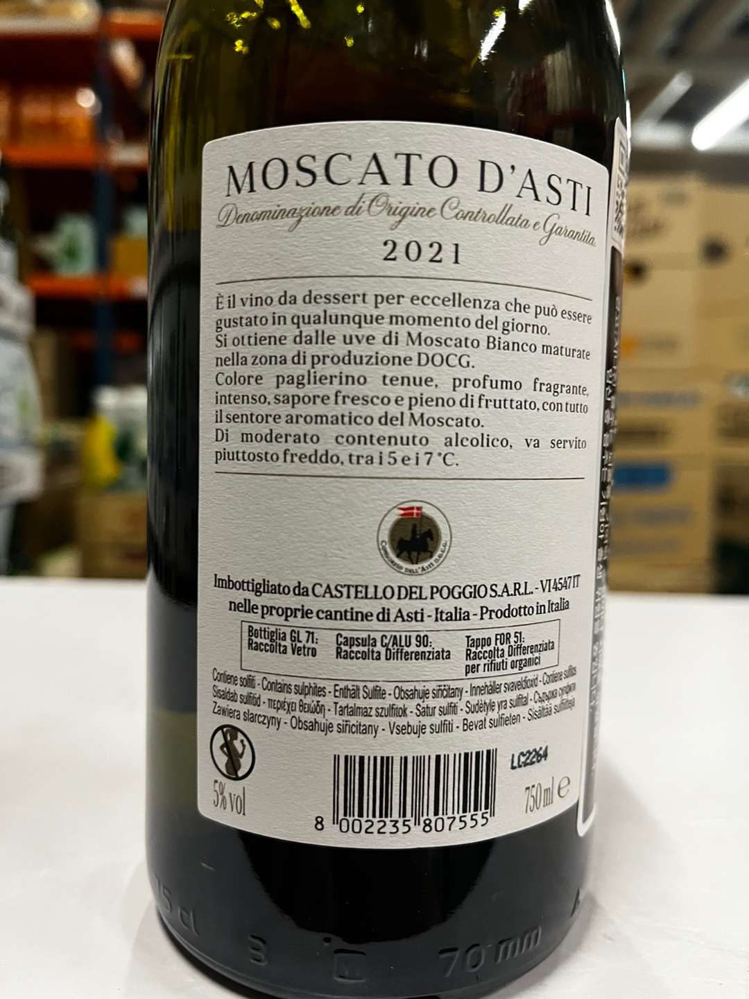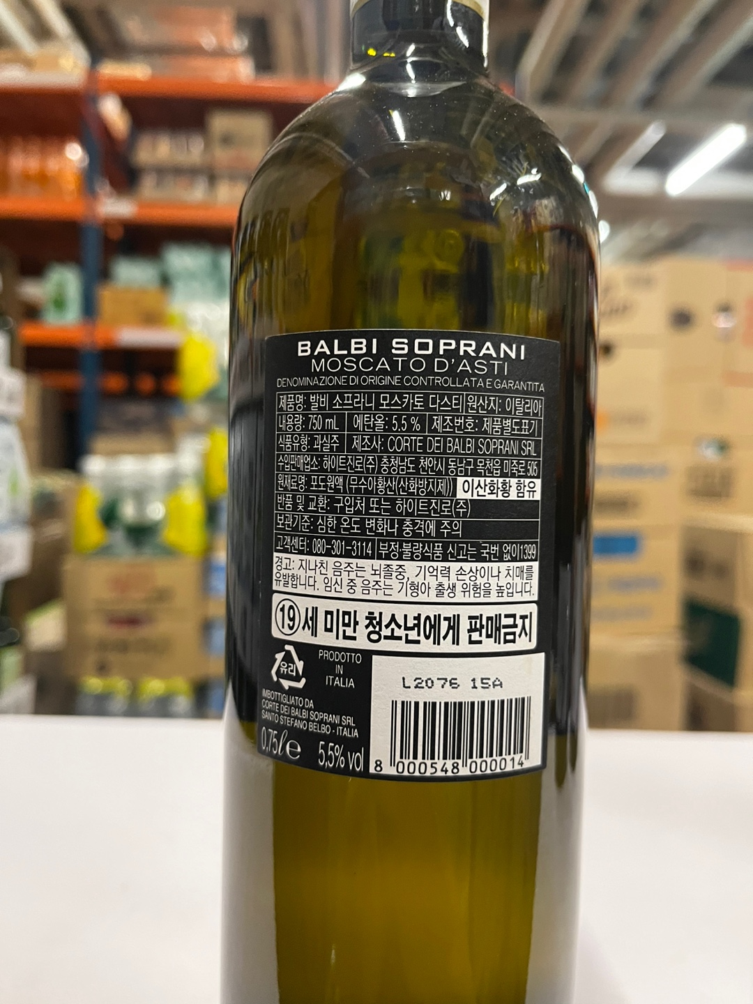 이탈리아를 원산지로 하는 와인입니다. 용량은 750ml이며 도수는 5.5도입니다.