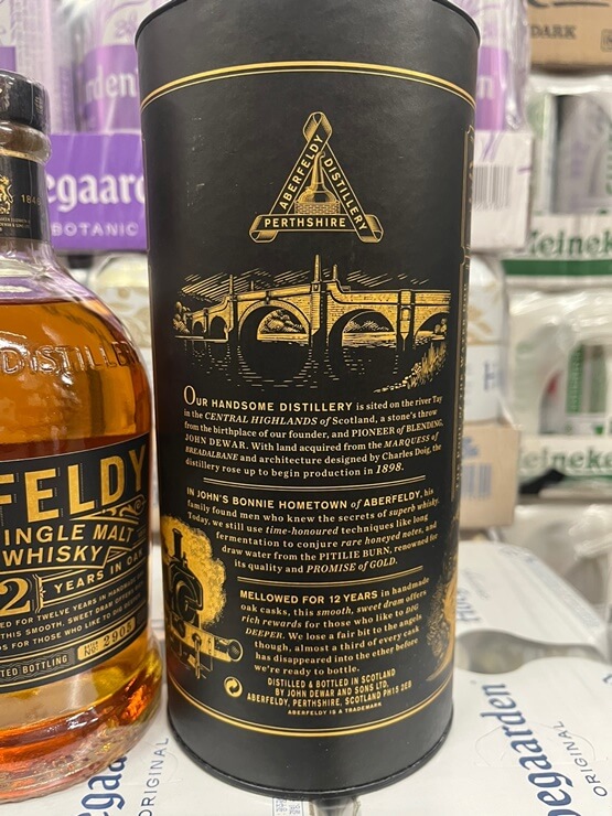 에버펠디 12년은 위스키 병과 플라스틱 케이스로 구성되어 있습니다. 블랙과 골드를 사용하여 에버펠디의 정체성을 잘 나타내었습니다. 또한 제공되는 플라스틱 케이스는 내구성이 좋아 위스키를 안전하게 보호해 줍니다. 제품 케이스는 원통형으로 제작되어 옆면과 뒷면에는 에버펠디 12년의 수상기록과 제품정보를 상세하게 제공하고 있으니 꼭 한 번 읽어 보실 것을 추천드립니다.