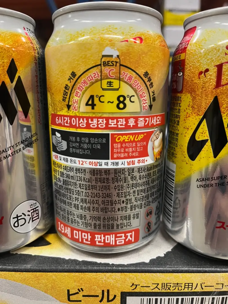 유의할 점은 상온에 보관하시거나 제품의 온도가 12도가 넘으면 뚜껑 개봉 시 넘칠 수 있다는 점입니다. 보관에 유의하시면서 드셔야 아사히 수퍼드라이 생맥주캔을 완벽히 즐기실 수 있습니다.