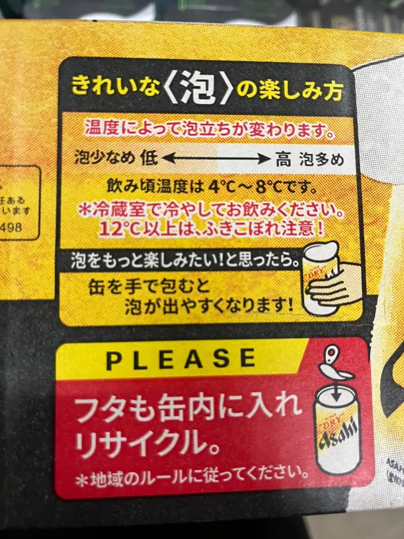 유의할 점은 상온에 보관하시거나 제품의 온도가 12도가 넘으면 뚜껑 개봉 시 넘칠 수 있다는 점입니다. 보관에 유의하시면서 드셔야 아사히 수퍼드라이 생맥주캔을 완벽히 즐기실 수 있습니다.