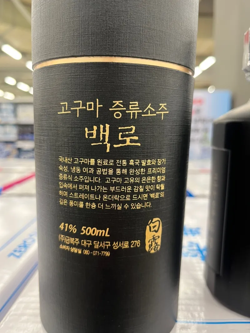백로는 당당한 한국 제품으로 한국산 고구마를 이용하였습니다. 고구마의 은은한 맛을 충분히 느낄 수 있기에 평소 고구마를 좋아하시거나 고구마 소주의 맛이 궁금하신 분이라면 좋은 구매 선택이 될 수 있습니다.