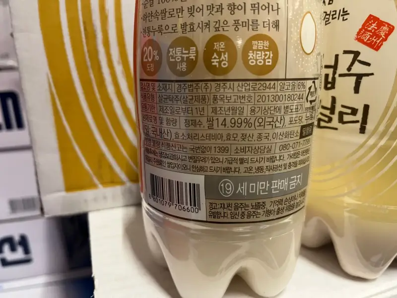 외국산 쌀 14.99%가 들어간 제품입니다. 쌀의 함량이 굉장히 높은 제품입니다. 가격은 홈플러스 기준 1,800원으로 일반적으로 판매하고 있는 막걸리와 큰 차이는 없는 편입니다. 개성이 뚜렷하지만 가격 또한 합리적이라 인기가 많은 제품입니다.