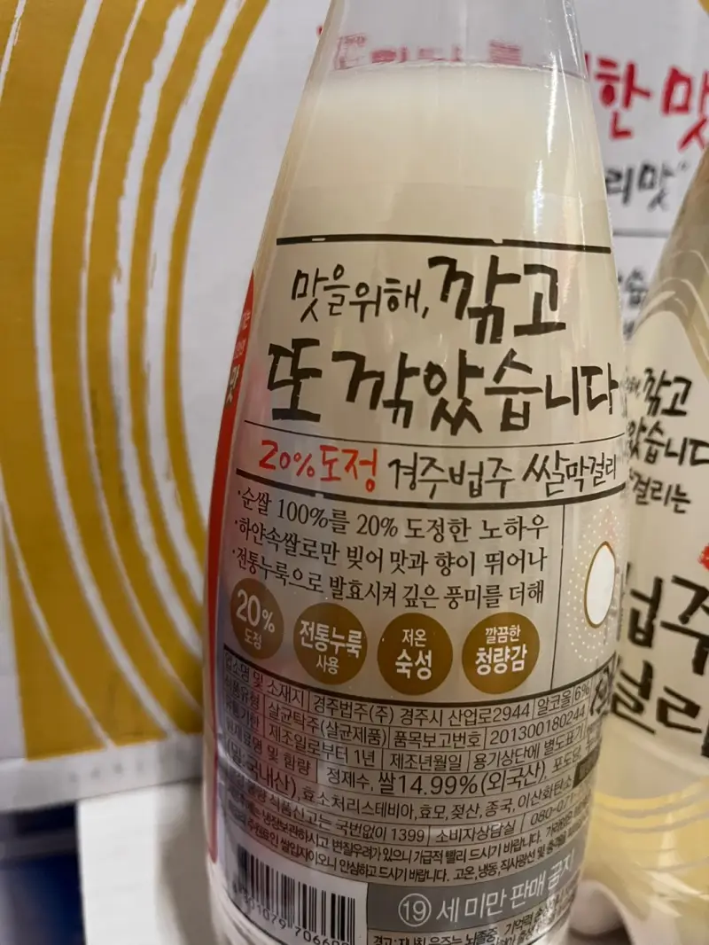 경주법주 쌀막걸리는 차례상으로 올리기도 하는 청주로 유명한 경주법주에서 만든 막걸리입니다. 경주법주 쌀막걸리는 청주와 막걸리를 동시에 맛볼 수 있는 특별함을 가진 막걸리이며 깔끔하고 부드러운 맛을 가졌습니다.