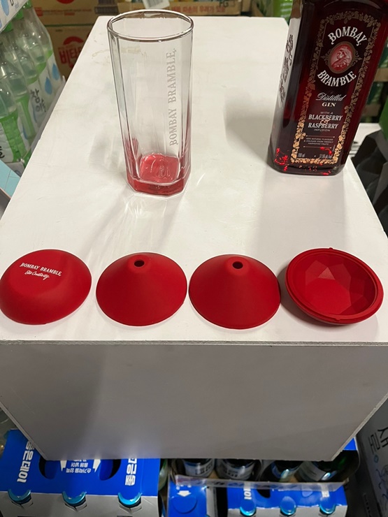 봄베이 브램블 전용잔 제품은 만나기가 힘든데요. 붉은색 전용잔이 술의 맛을 몰라도 구매가 하고 싶을 만큼 매력적으로 생겼습니다. 아이스 몰드의 경우는 실리콘 재질로 제작되어 봄베이 브램블에 적합한 얼음을 얻으실 수 있습니다.