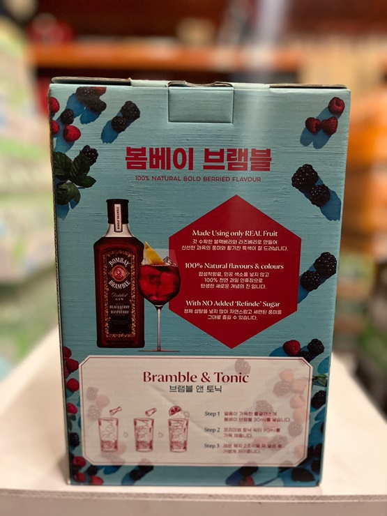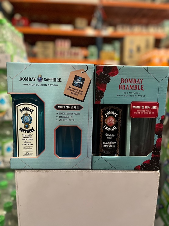 대형마트에서 두 가지 전용잔 패키지 모두 판매하고 있으나 봄베이 사파이어의 경우 주기적으로 잔 패키지가 나오고 있으며 브램블의 경우에는 단품은 입고 판매되고 있지만 전용잔 패키지는 입고되지 않고 있습니다.