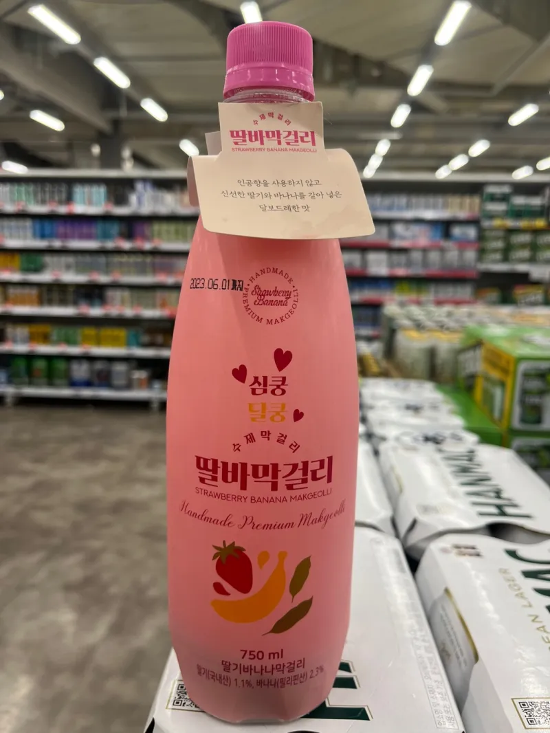 과일 막걸리를 진짜로 만들어 보자는 의지가 보이는 제품입니다. 국내산 딸기 1.1%와 필리핀산 바나나 2.3%를 사용하여 만든 제품입니다. 또한 국내산 쌀과 벌꿀을 사용한 점도 특징입니다.
