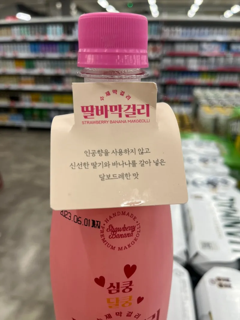 과일 막걸리를 진짜로 만들어 보자는 의지가 보이는 제품입니다. 국내산 딸기 1.1%와 필리핀산 바나나 2.3%를 사용하여 만든 제품입니다. 또한 국내산 쌀과 벌꿀을 사용한 점도 특징입니다.