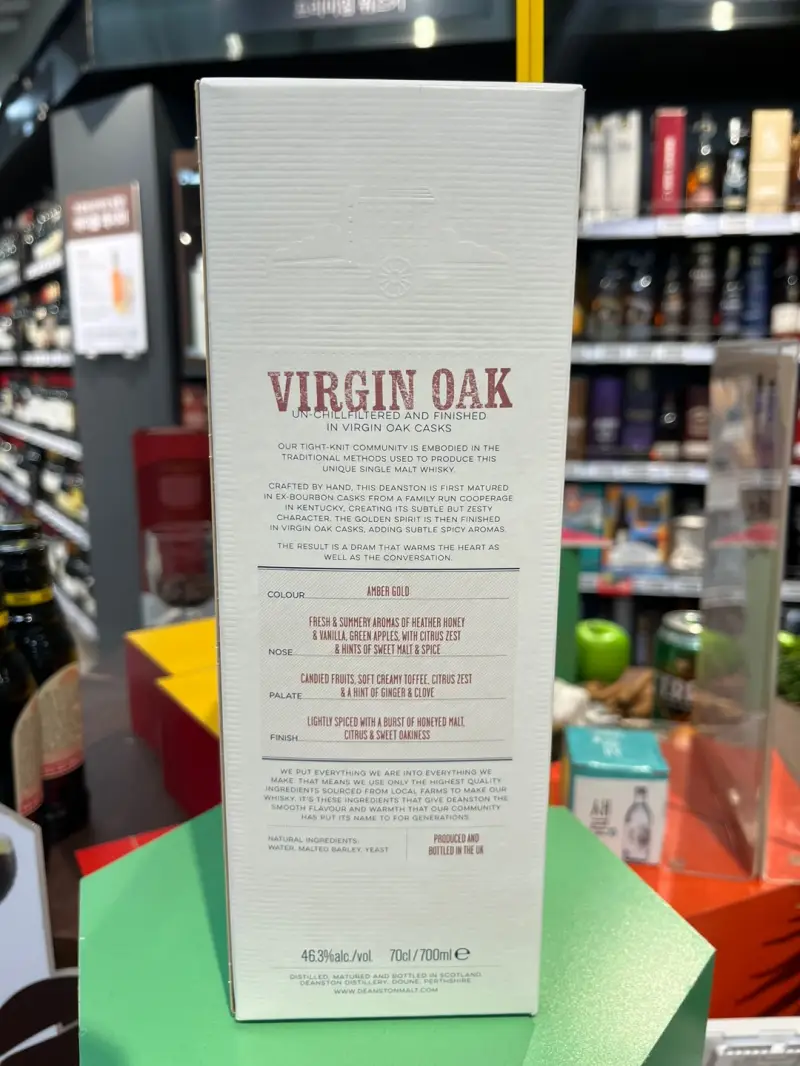 딘스톤 버진 오크는 위스키를 즐기시는 분들에게 새로운 경험을 선사해 줄 제품입니다. 버진 오크는 한 번도 사용하지 않은 오크통을 말합니다. 그래서 딘스톤 버진 오크는 오크통 특유의  맛과 향의 느낄 수 있는 위스키입니다.