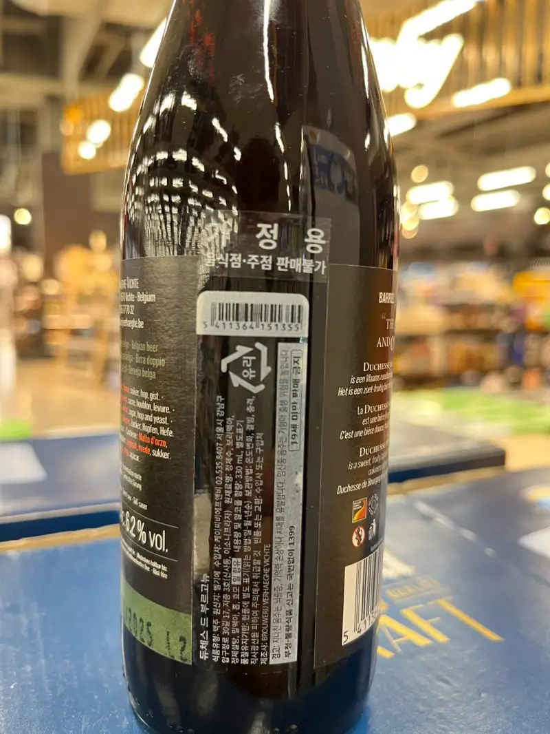 대형마트 중 홈플러스에서는 꾸준하게 듀체스 드 부르고뉴를 판매하고 있습니다. 다양한 용량에 비해 330ml 용량만 판매하고 있습니다. 수입맥주 중에서 비싼 편이라 많은 판매가 되지는 않지만 아시는 분들이 찾아와서 한 번에 구매하시는 경향이 있는 제품입니다.  입고는 1박스(12병) 정도로 꾸준히 되고 있습니다.