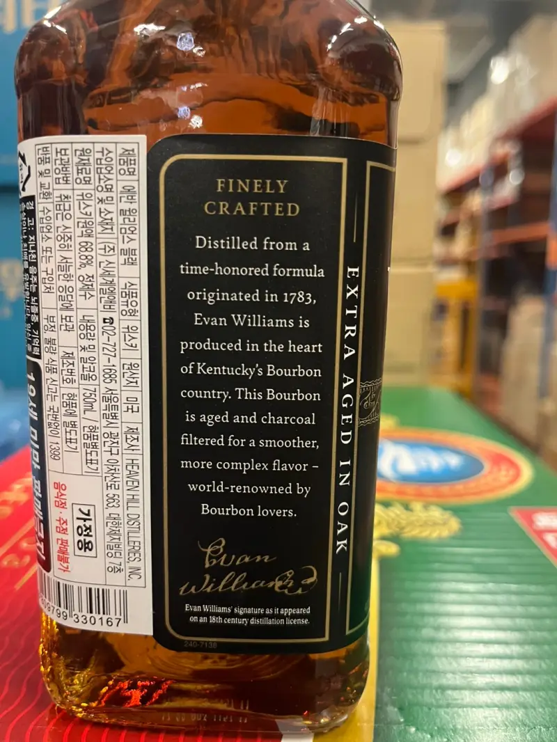무엇보다도 에반 윌리엄스 블랙이 사랑받는 것은 이러한 좋은 품질에도 750ml에 3만 원 전후에 구매할 수 있다는 극한의 가성비 제품이기 때문입니다.