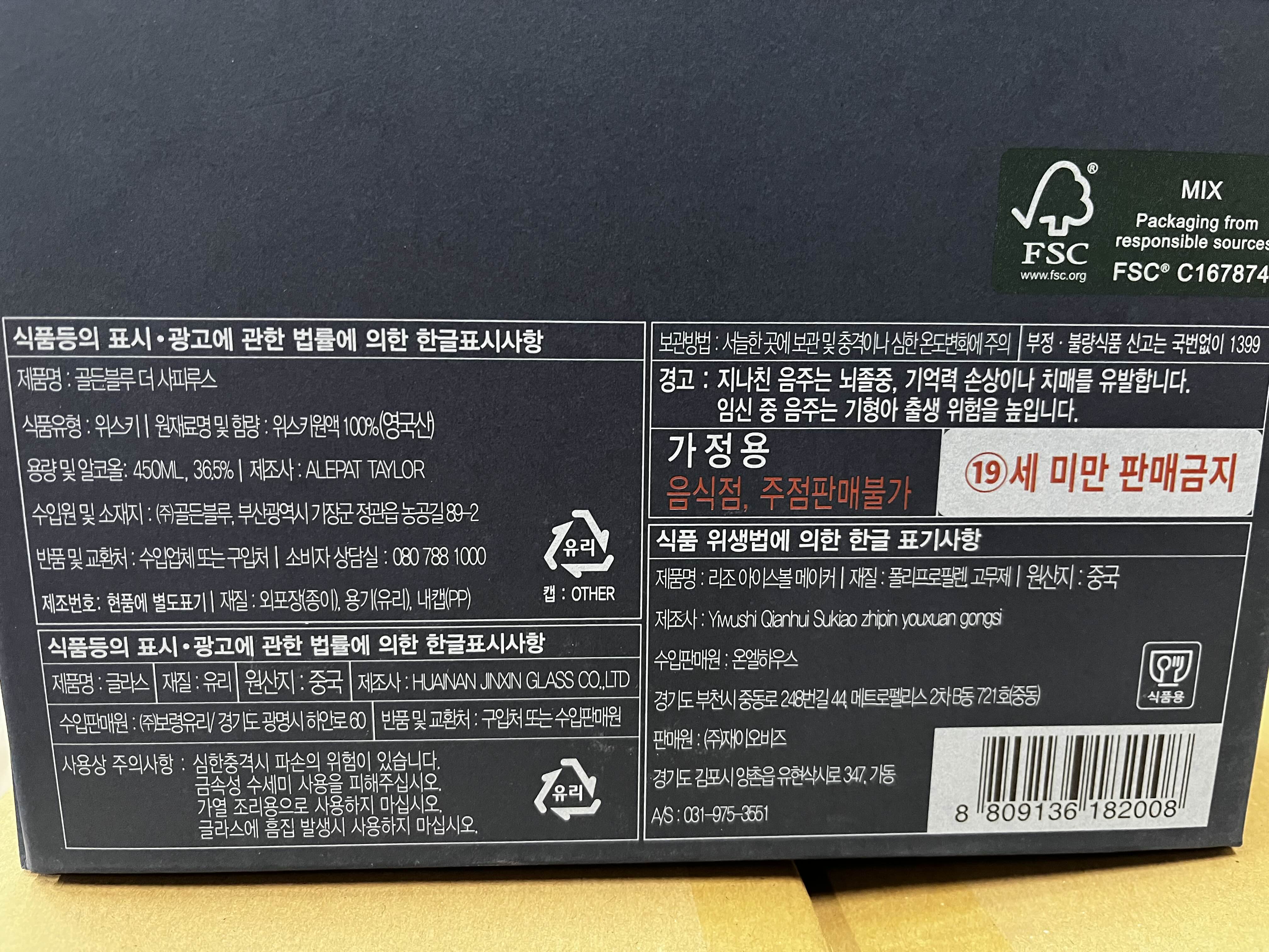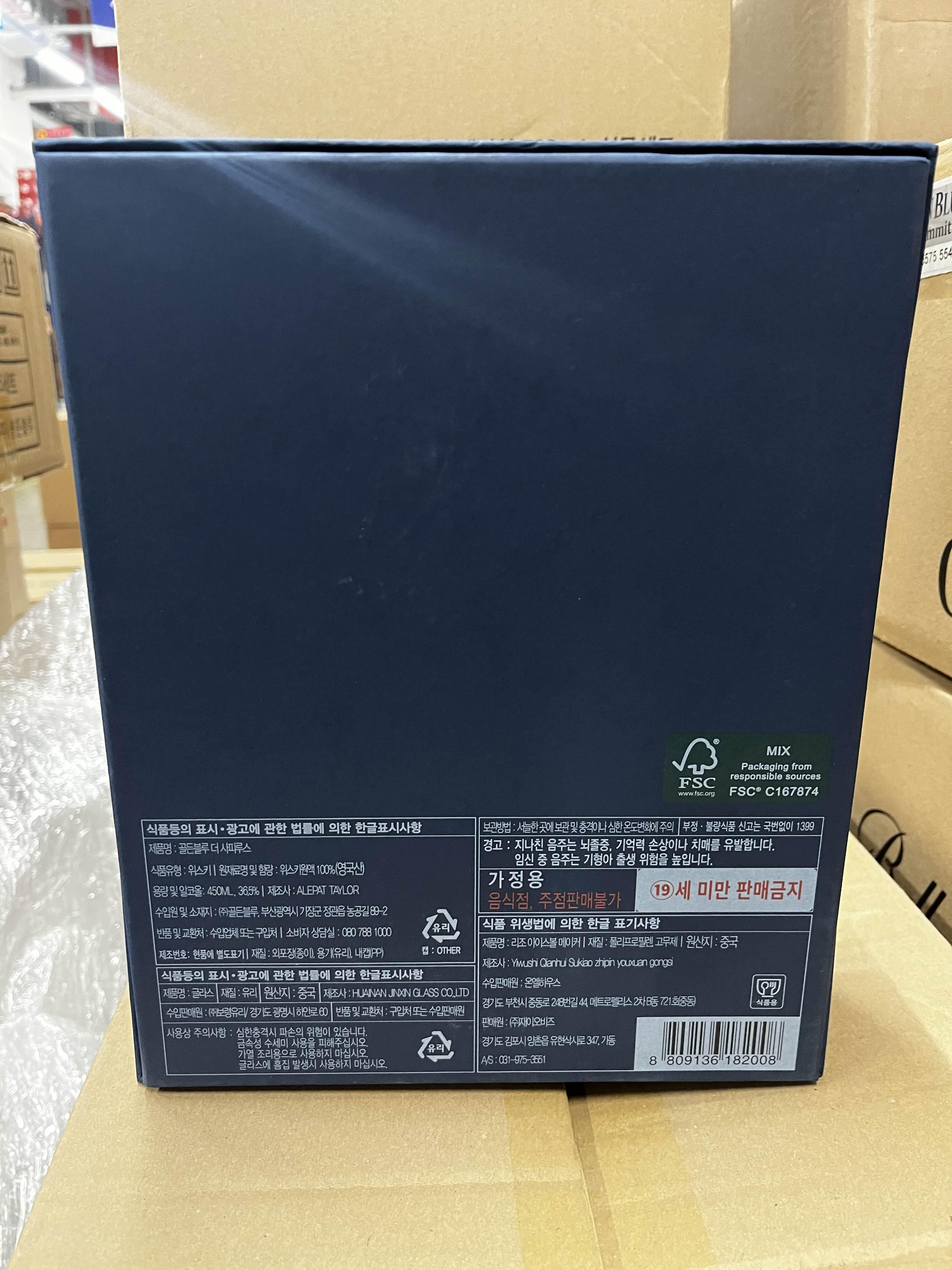 보통의 경우에는 이렇게 낱병으로 판매가 되지만 명절이나 특별한 경우에는 위스키잔을 함께 구성해서 판매하고 있습니다.
