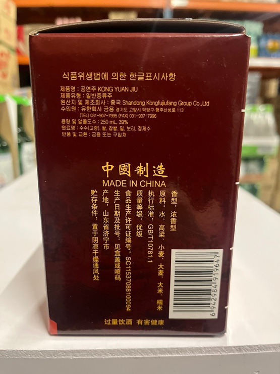 포장지에 공자의 그림이 있어 공자가 마신 술로 오해하실 수 있으나 공자의 후손들이 공자의 제사상에 올리던 고량주라고 합니다.