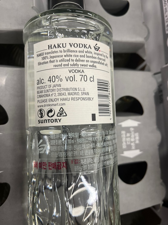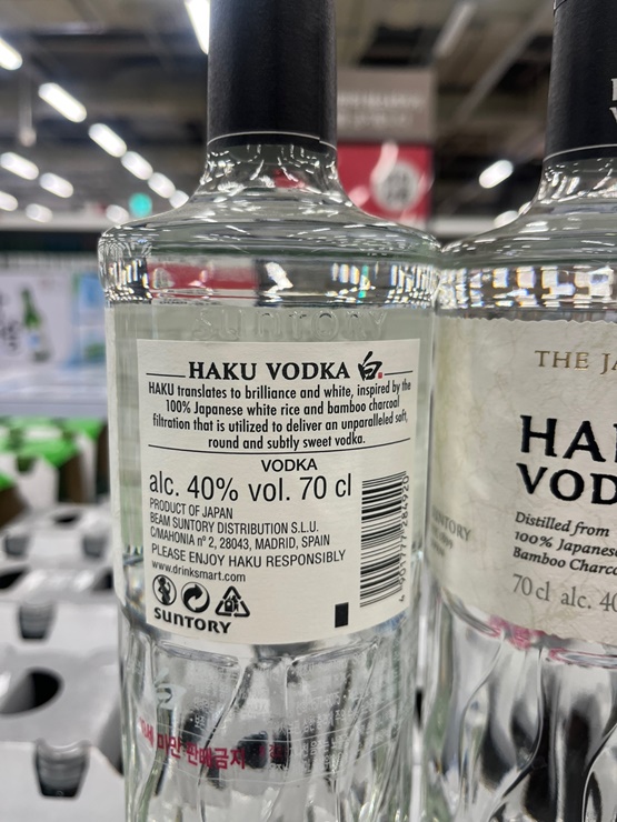 히비키 야마자키 등 재패니즈 위스키의 진면목을 보여주는 산토리답게 매력적인 보드카를 만들어낸 제품이 하쿠 보드카입니다.