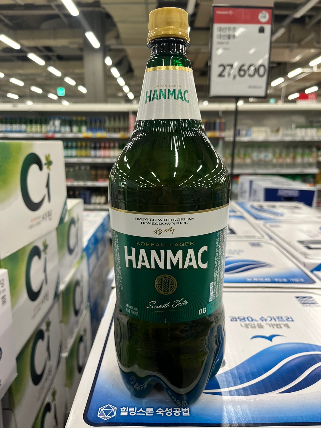 한맥의 경우 페트 제품은 1.6리터 용량만 판매되고 있습니다. 대형마트에서 구매 시 주기적으로 쿠폰할인 행사를 진행하고 있습니다. 현재 구매 시 1개당 300원의 할인이 적용됩니다.