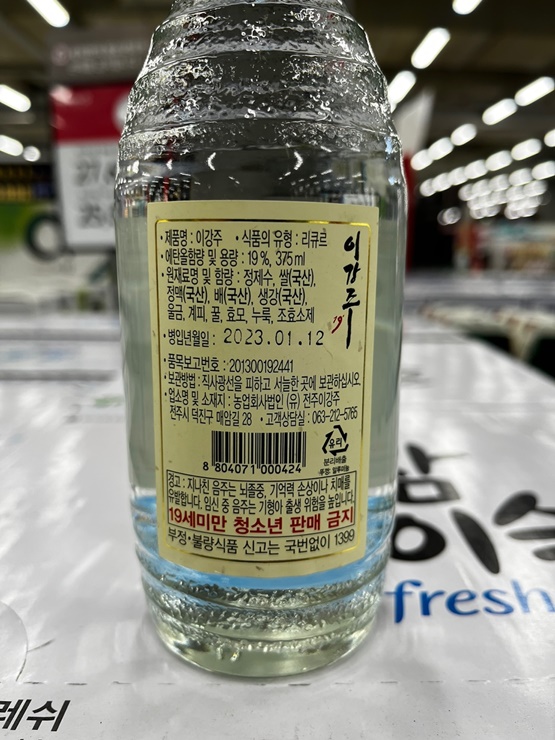 전통주로 사랑받고 있는 전주 이강주 제품을 대형마트에서 만나실 수 있습니다. 전주의 전통주로 배와 생강이 들어가 이강주로 불리는 제품입니다.