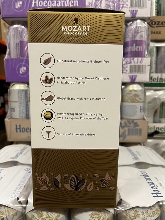 모차르트 초콜릿 크림은 부드러운 초콜릿이 가득 들어간 갈색 빛의 리큐르 제품입니다. 살살 녹는 밀크 초콜릿이 달콤한 풍미를 내어 입안을 가득 채웁니다. 처음과 끝까지 부드럽고 풍부한 맛을 유지하여 긴 여운을 남겨주는 제품입니다.