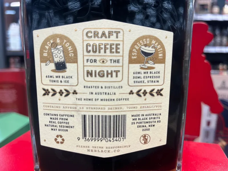 미스터 블랙은 호주에서 생산된 커피 리큐르 제품입니다. 100% 아라비카 콜드 브루와 보드카를 조화롭게 블렌딩 하여 만든 술로 콜드 브루를 이용한 제품인 만큼 커피를 좋아하시는 분과 새로운 스타일의 리큐르를 접하시고 싶은 분들에게 적합한 제품입니다.