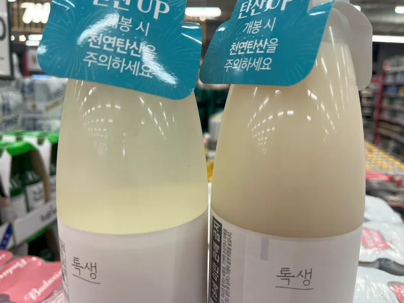 국내산 쌀을 사용하고 아스파탐을 뺀 막걸리가 1,000원 대라는 점만 생각해도 톡생 막걸리는 가성비 막걸리라 할 수 있습니다. 톡생 막걸리는 톡 쏘는 막걸리 시리즈를 만든 '우리술' 제품이라 탄산에 진심을 보입니다. 탄산이 강한 막걸리인 만큼 흔들어서 곧바로 개봉하시면 제품 내용물이 터지듯이 나올 수 있기에 주의하셔서 개봉하시길 바랍니다.