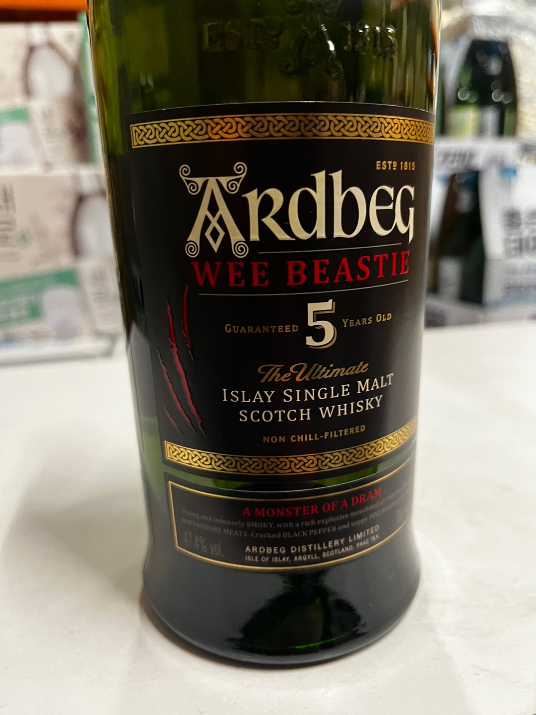 숙성연산 5년의 아드벡 위비스티는 위스키의 성지 아일라의 대표적인 위스키입니다. 위스키 원액 100%의 제품이며 47.4도라는 높은 도수를 가지고 있습니다. 그에 반해 가격은 저렴한 편입니다.
