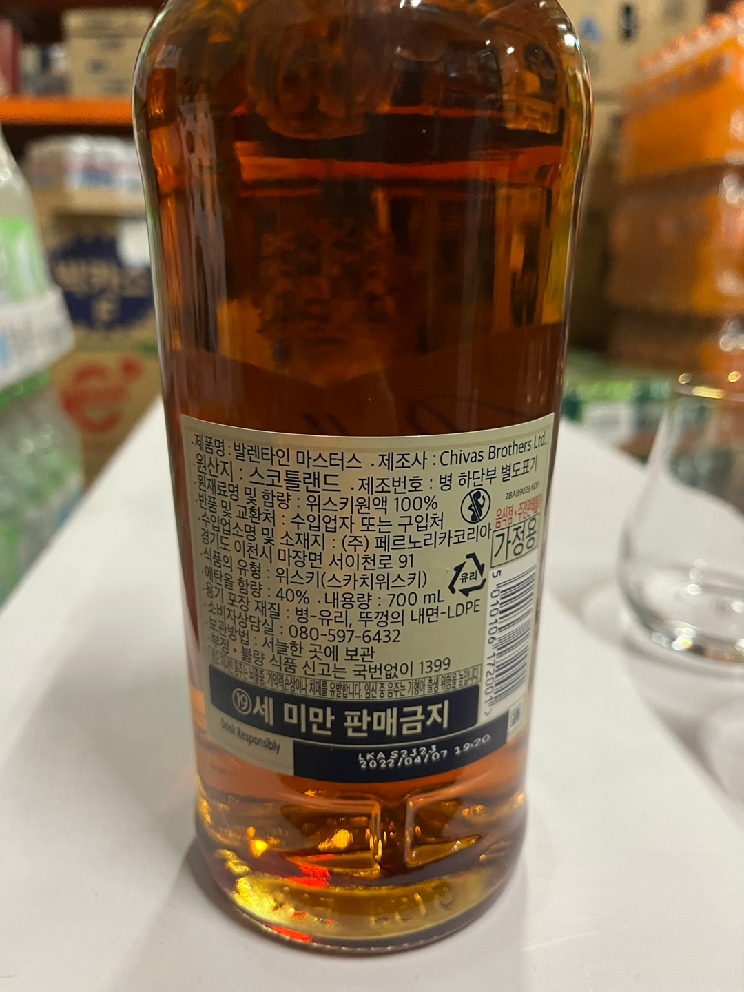 그래서 비공식적으로는 발렌타인 15년이라 생각하시면 좋습니다. 실제 숙성연산을 기재해야 할 때는 가장 낮은 연산을 적어야 하기 때문입니다.