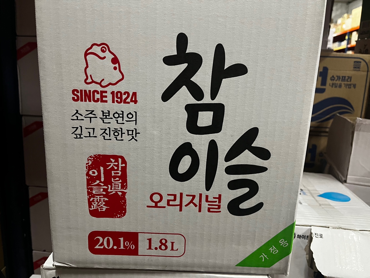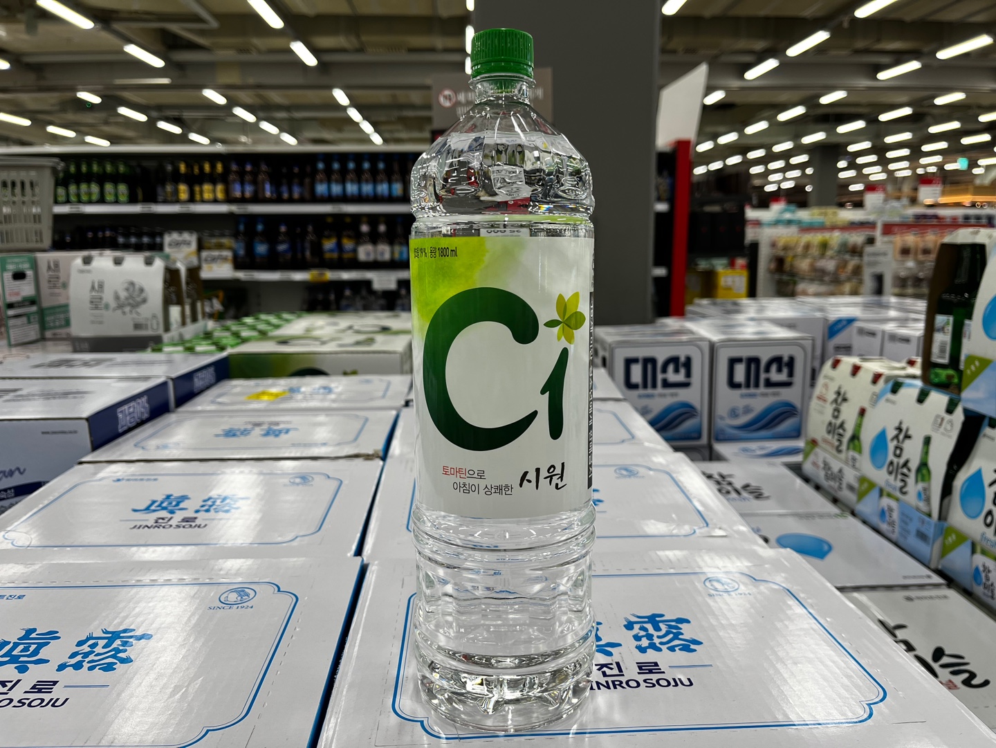 그중에서 소개 드릴 제품은 각 주류회사에서 대용량으로 판매하는 1.8리터 제품입니다. 페트병 재질이라 무게가 가벼워 편리하게 이동이 가능한 장점이 있습니다.