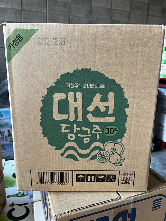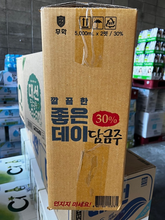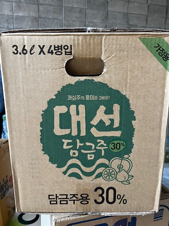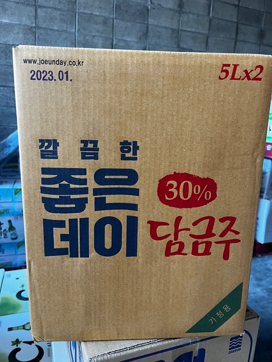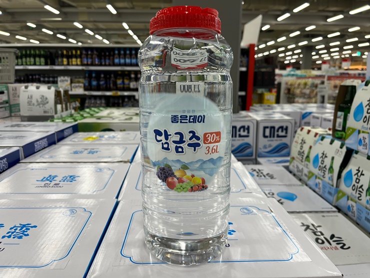 부산 경남에서 판매되는 좋은데이 입니다. 30도 담금주를 판매하고 있습니다. 용량은 3.6리터와 5리터 두 가지 종류를 판매하고 있으며 참이슬과 가격은 동일합니다.