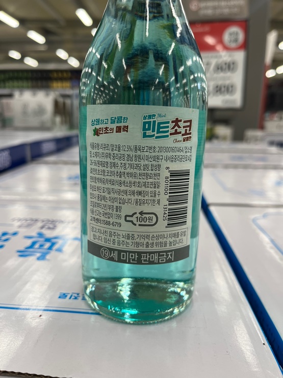 호불호가 많다고 알려진 민트초코를 소주에 녹여냈습니다. 박하유 18.8mg과 코코아 추출액 6.4mg을 넣어 민초파들의 마음을 설레게 한 제품입니다. 도수는 12.5도로 무난하며 병의 디자인을 민트의 느낌을 한껏 담아내어 마시기 전에도 민트향을 느낄 정도입니다.