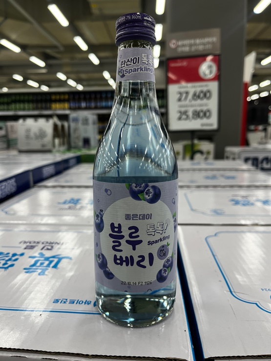 석류와 함께 출시되어 좋은데이 과일소주의 쌍두마차가 된 좋은데이 블루베리입니다. 블루베리 과즙이 포함된 제품이며 석류와 마찬가지로 7도의 도수로 부담이 없는 제품입니다.
