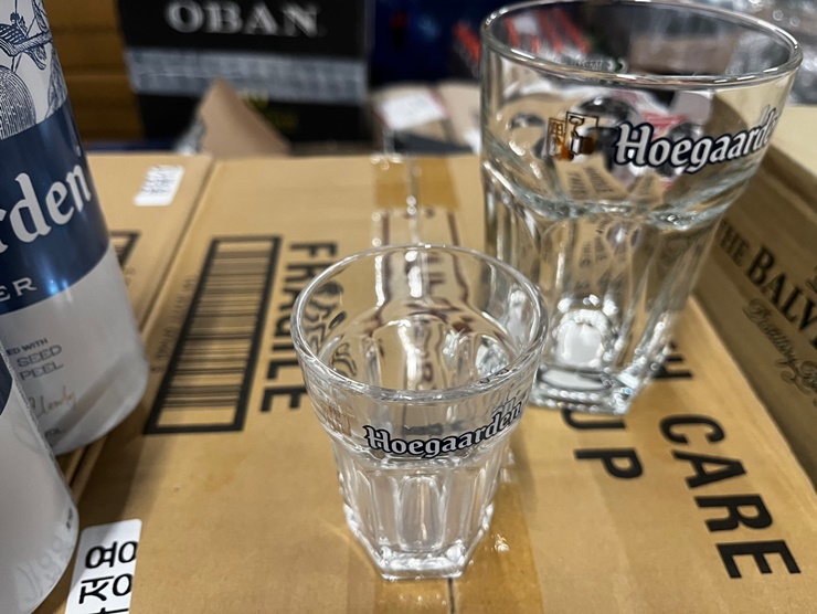 이번 기획세트의 가장 중요한 구성품입니다. 전용잔 때문에 제품을 구매하는 경우도 참 많습니다. 호가든 전용잔은 특히 인기가 많습니다. 호가든 같은 경우에는 호가든 특유의 디자인으로 된 잔을 다양한 크기로 함께 제공하고 있는데요.