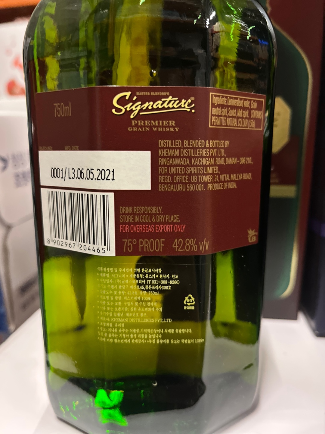 인도를 맛볼 수 있는 기회라고 드는 시그니처 그레인위스키입니다. 일반적인 블렌디드 위스키가 아닌 스카치위스키, 인도 몰트, 곡물 증류주를 함께 블렌딩 하여 만든 제품입니다.