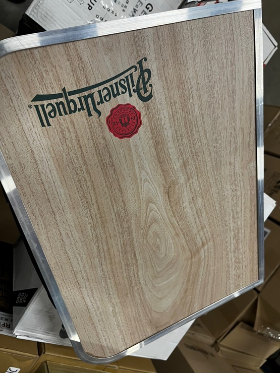 제품 한쪽에는 필스너 우르켈의 마크가 선명하게 새겨져 있어 디자인면에서도 깔끔하며 나무의 느낌을 잘 살려서 맥주를 마시는 편안한 느낌도 들게 합니다.
